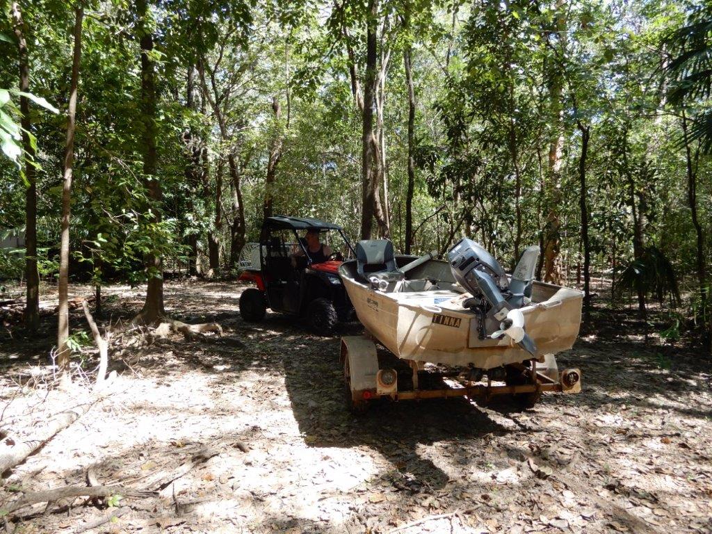 We have had shares in Section 9 since it was first set up in 1991 and have been visiting regularly since then. Under agreement with the Consortium, we established our residential area on the bank of the Finniss River, in the rain forest 1 km from Threeways in 1992. We started with a boat ramp, a boatshed and barbeque/kitchen then built up to our current Main Camp which has 4 residential buildings, diesel generator, water pump, 2 boat sheds, 3 tool sheds, 3 water tanks and reinforced fencing.