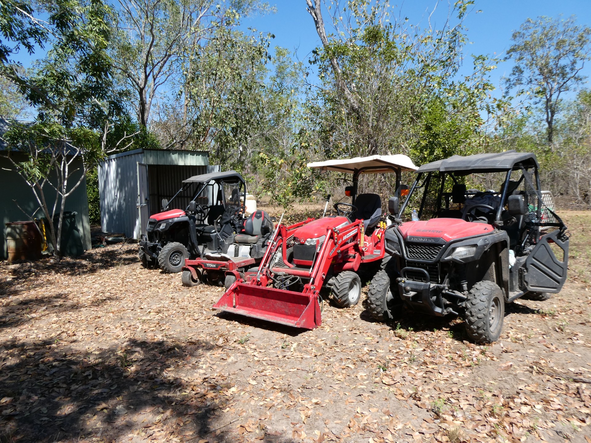 We also have a camp above the flood line, to store our machinery. There are three sheds and a roofed container to store a 25hp 4wd Massey Ferguson tractor with a 4-in-1 bucket and a slasher, and two Honda 4wd side-by-side buggies. All machines were purchased new and are well maintained. Batteries are recharged through roof-top solar panels with regulated flow to the batteries. There is also a fully equipped fire trailer under a car port at the Top Camp.