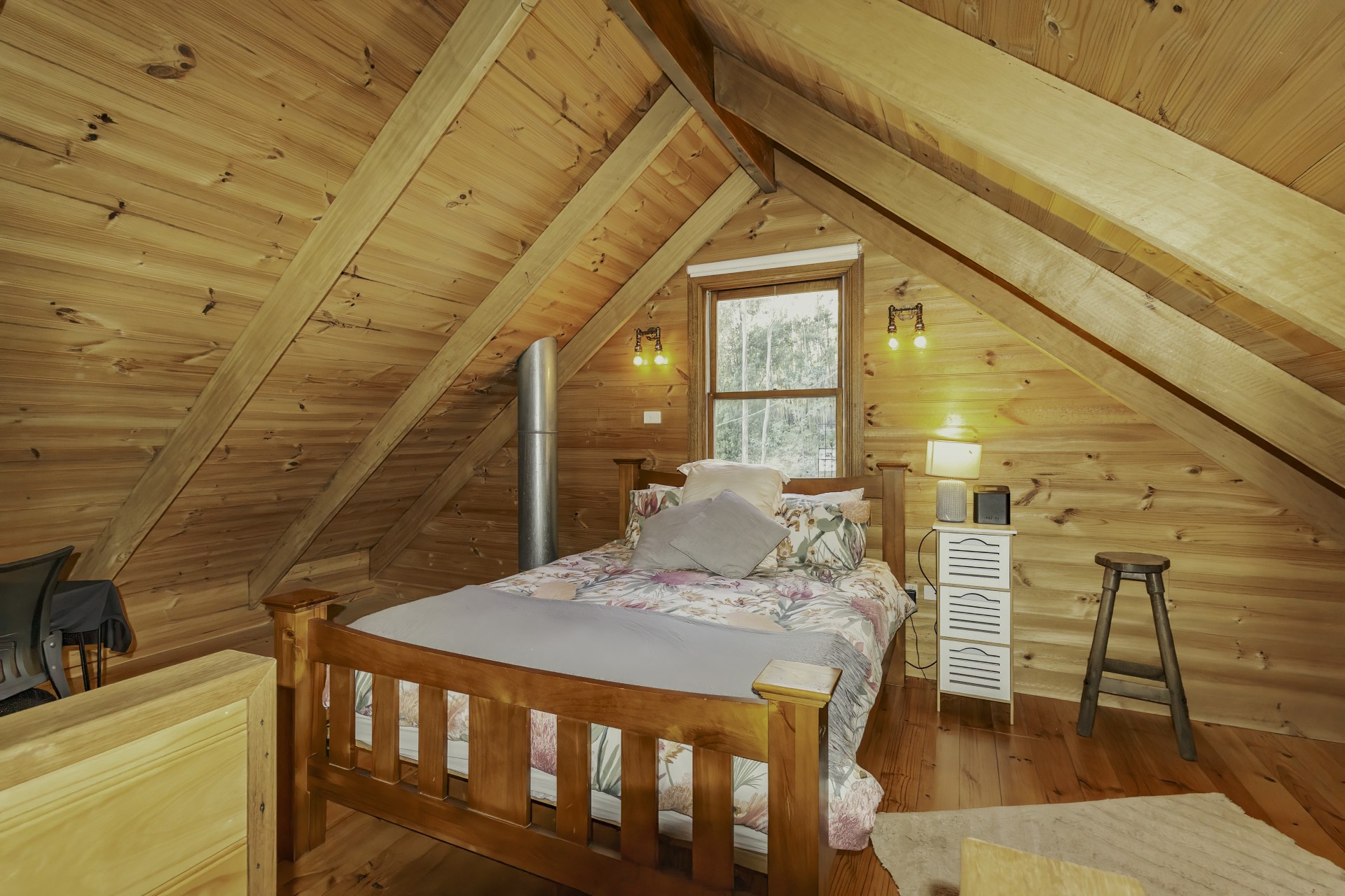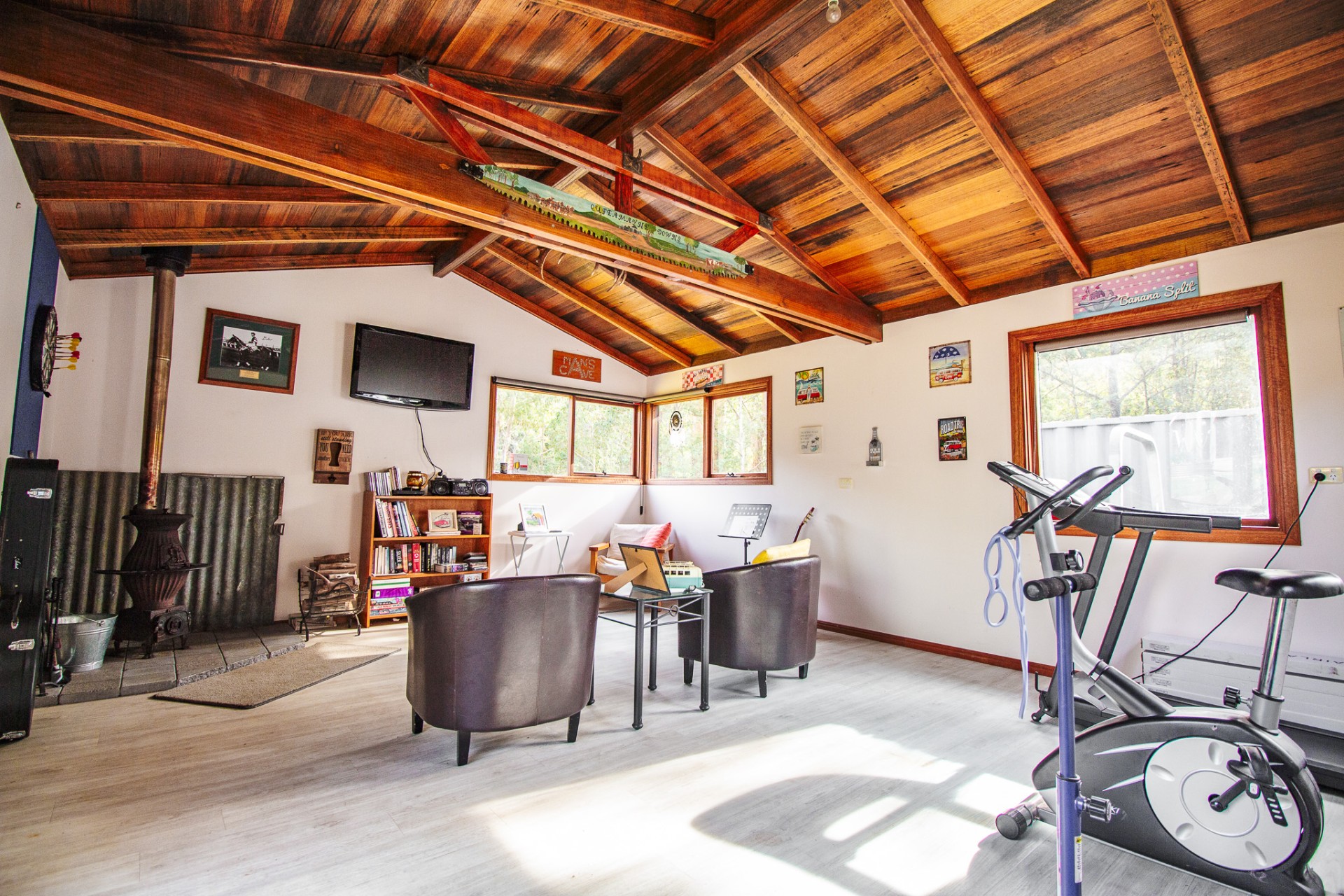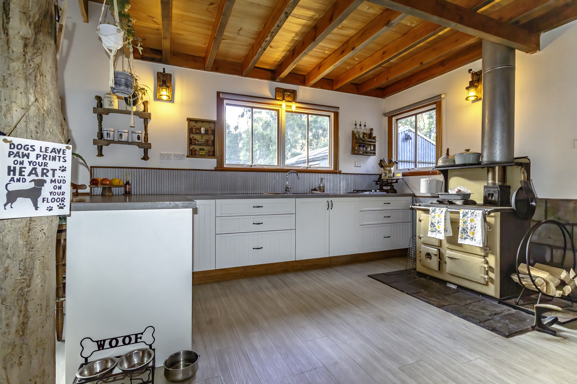 The house faces in a northerly direction with large windows allowing sunlight to stream in and naturally heat the home. A wellstood combustion oven stands proudly in the modern kitchen (renovated in 2018), providing a backup to the solar hot water system and cooks the most amazing meals. a slow combustion wood heater heats the home over the colder months. All these helps to reduce electricity bills. The separate studio also has a wood heater (potbelly) too.