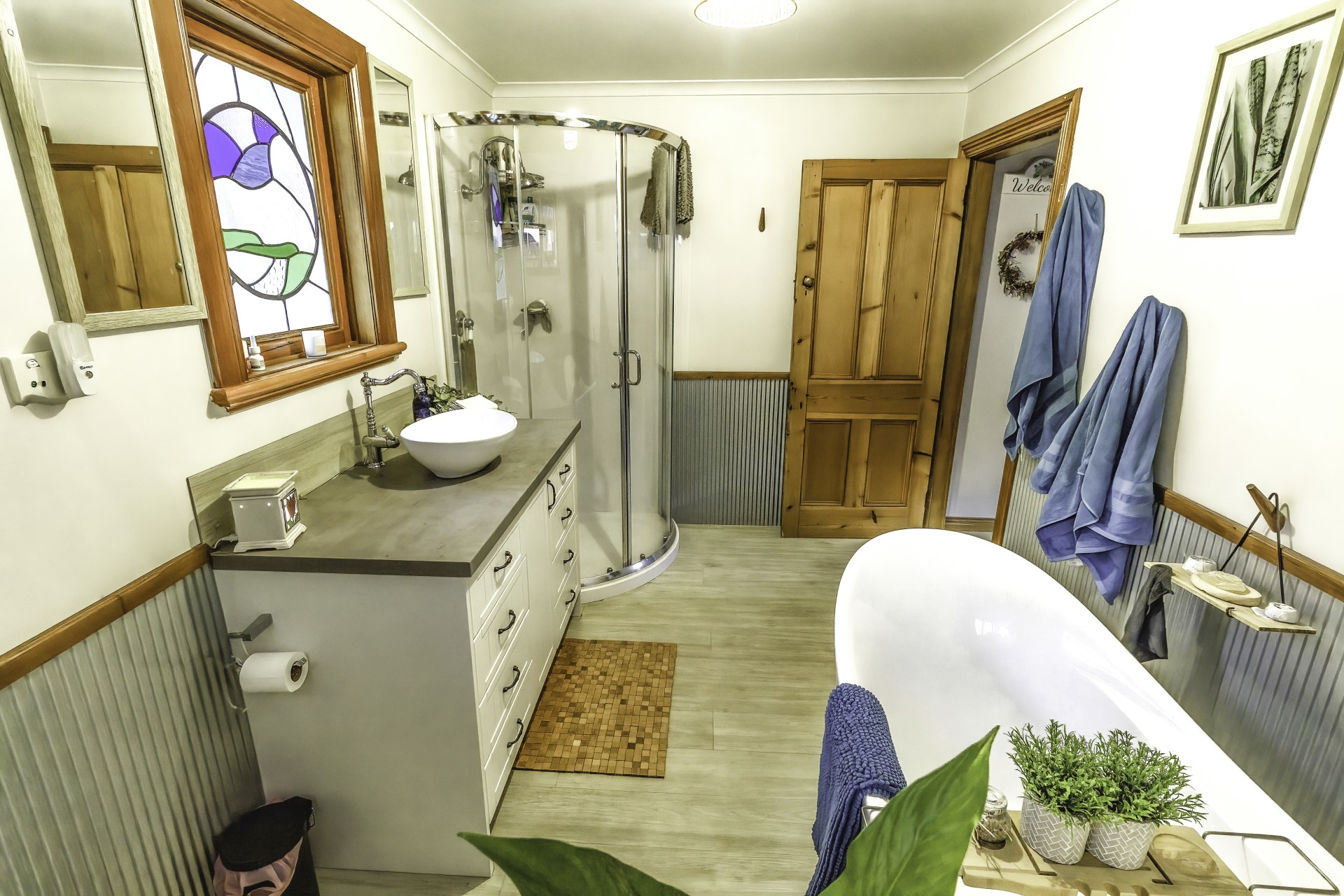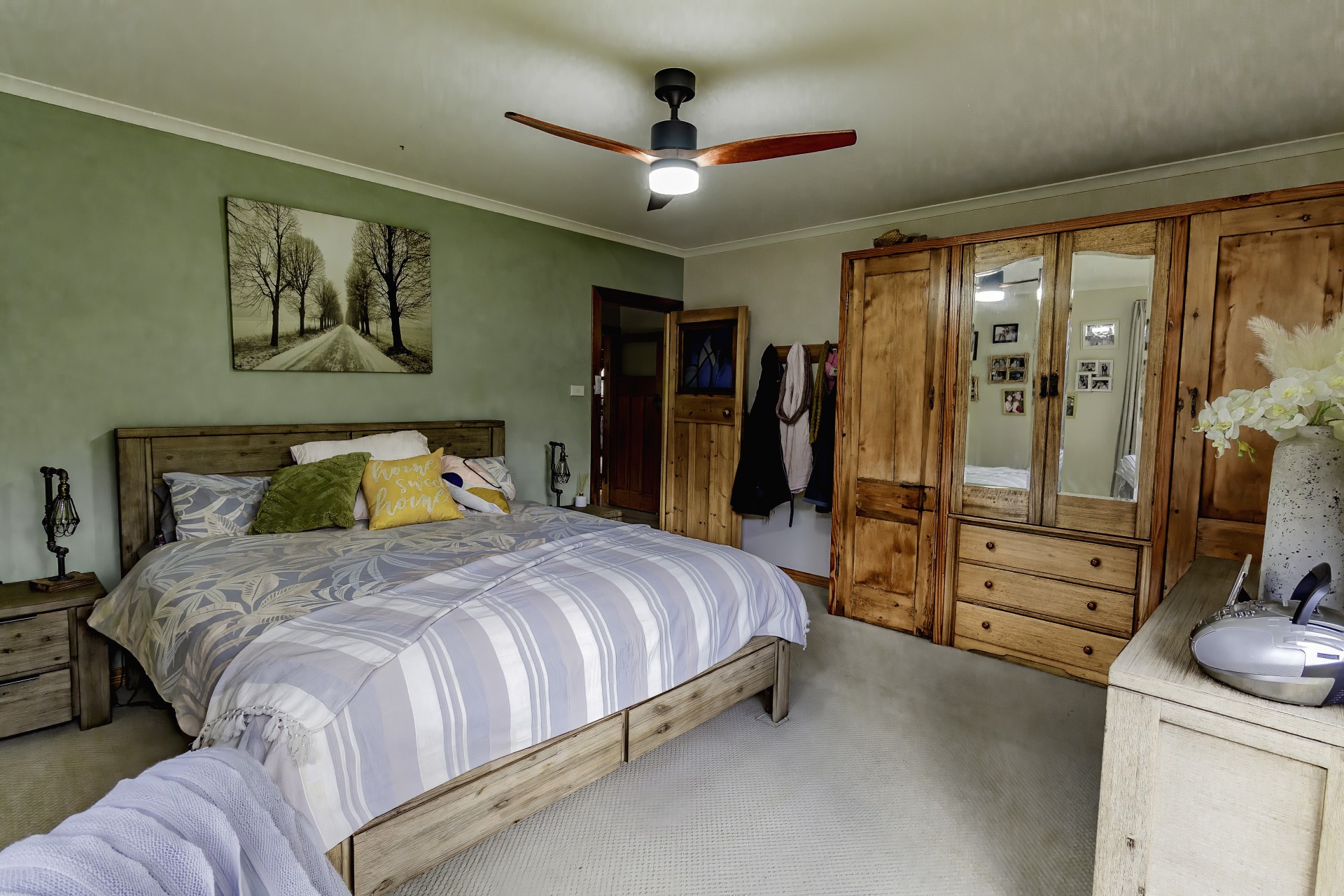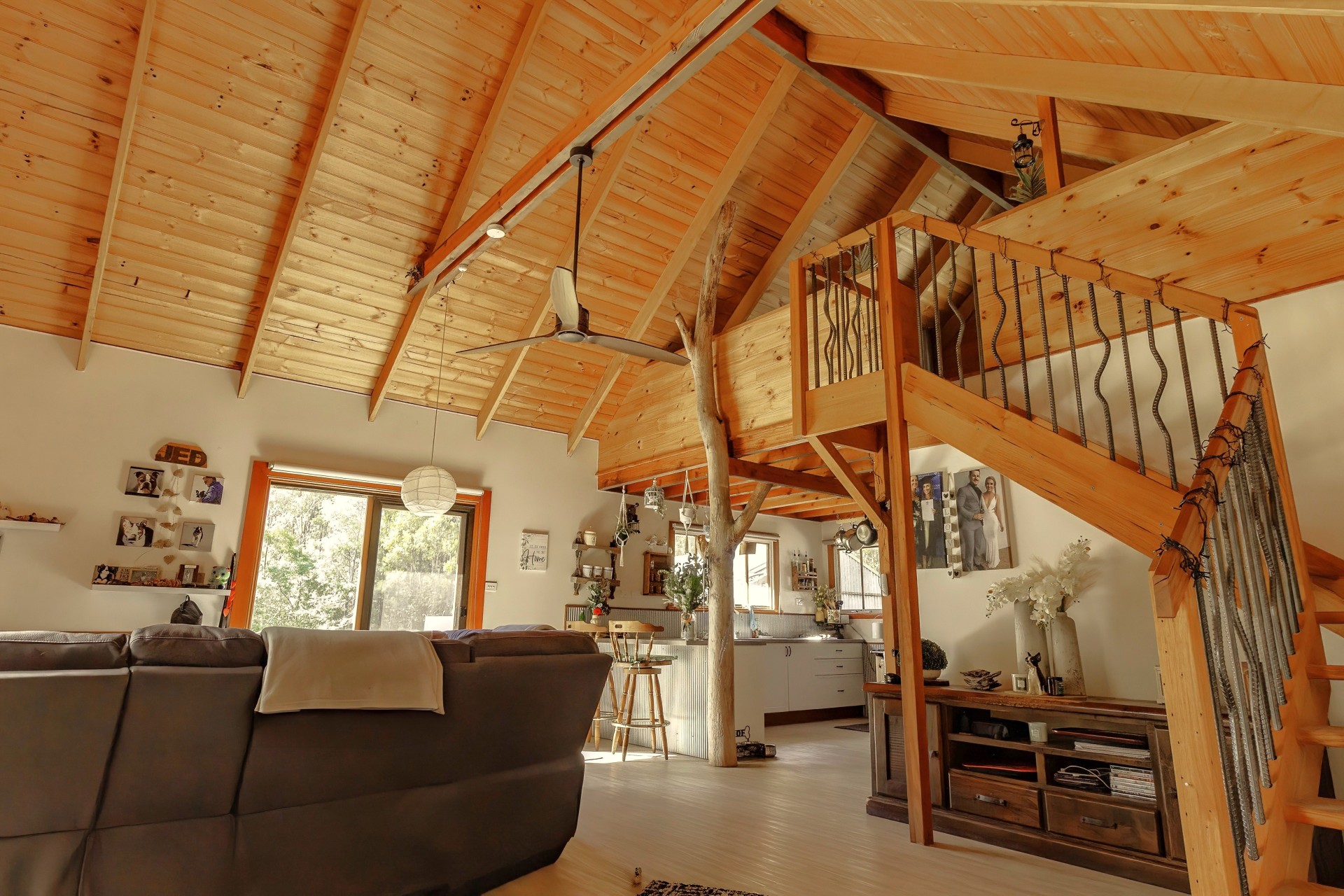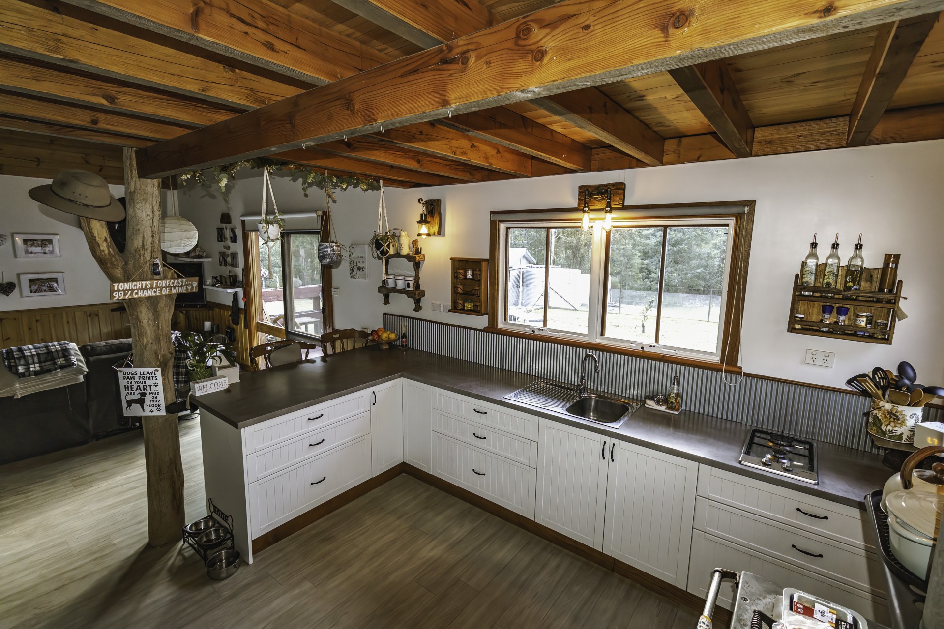 The house faces in a northerly direction with large windows allowing sunlight to stream in and naturally heat the home. A wellstood combustion oven stands proudly in the modern kitchen (renovated in 2018), providing a backup to the solar hot water system and cooks the most amazing meals. a slow combustion wood heater heats the home over the colder months. All these helps to reduce electricity bills. The separate studio also has a wood heater (potbelly) too.