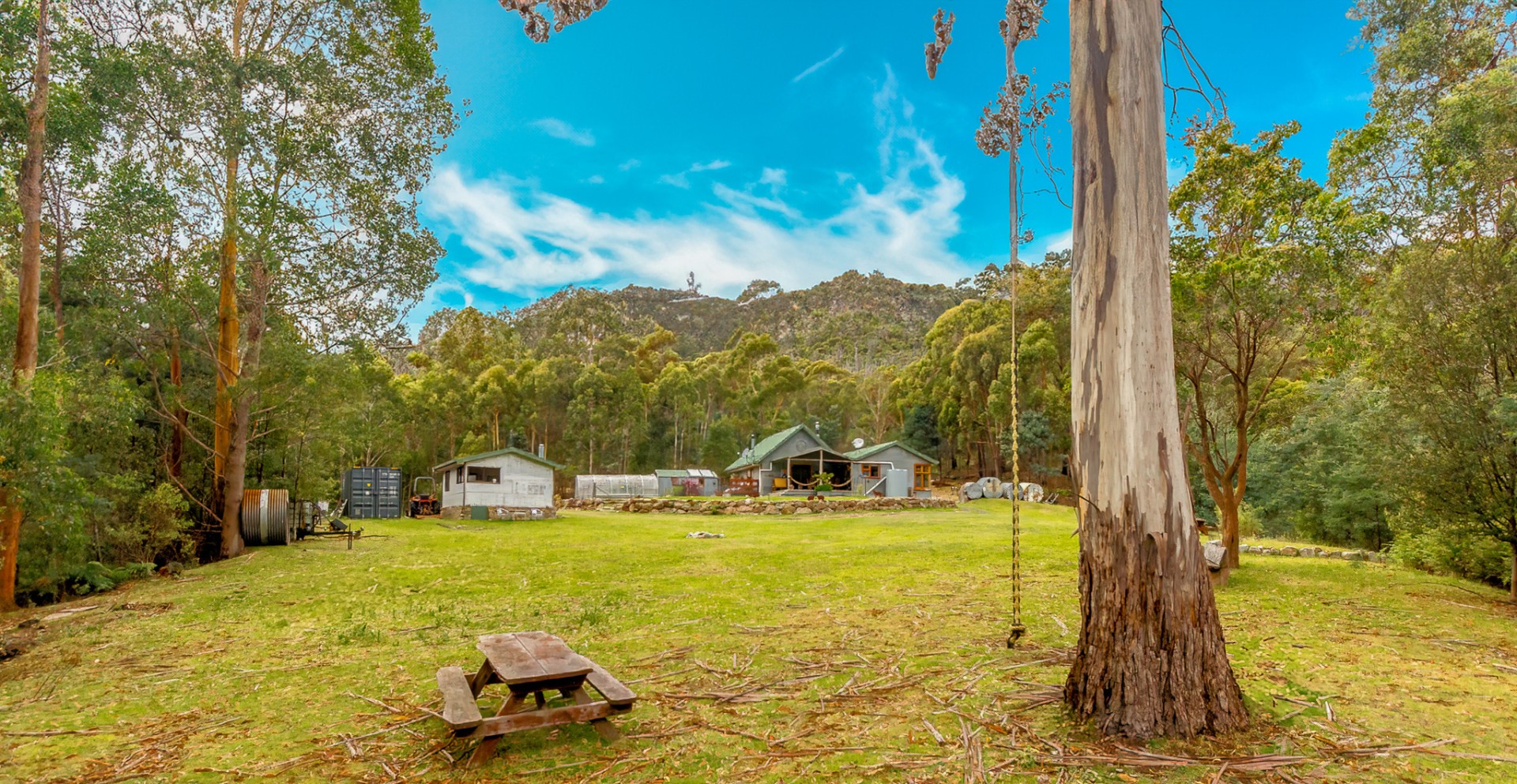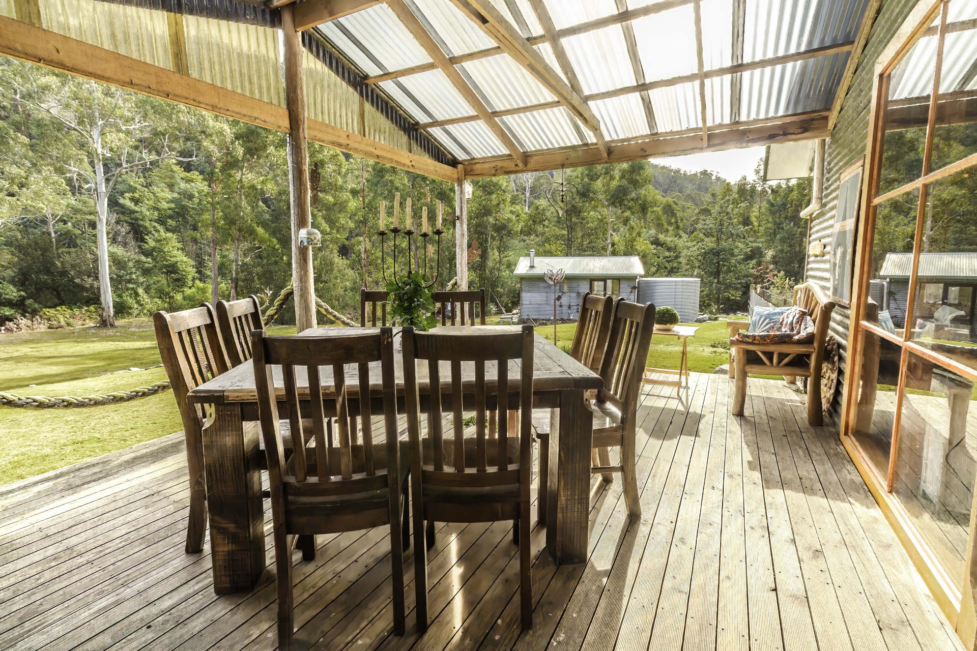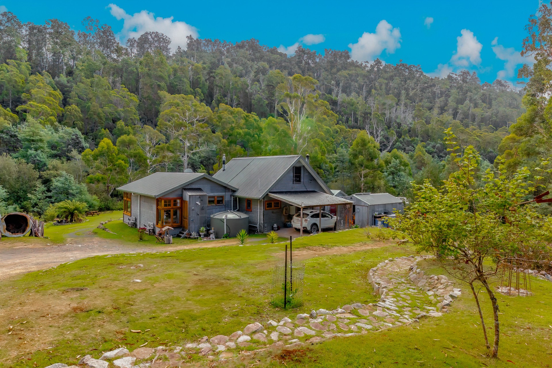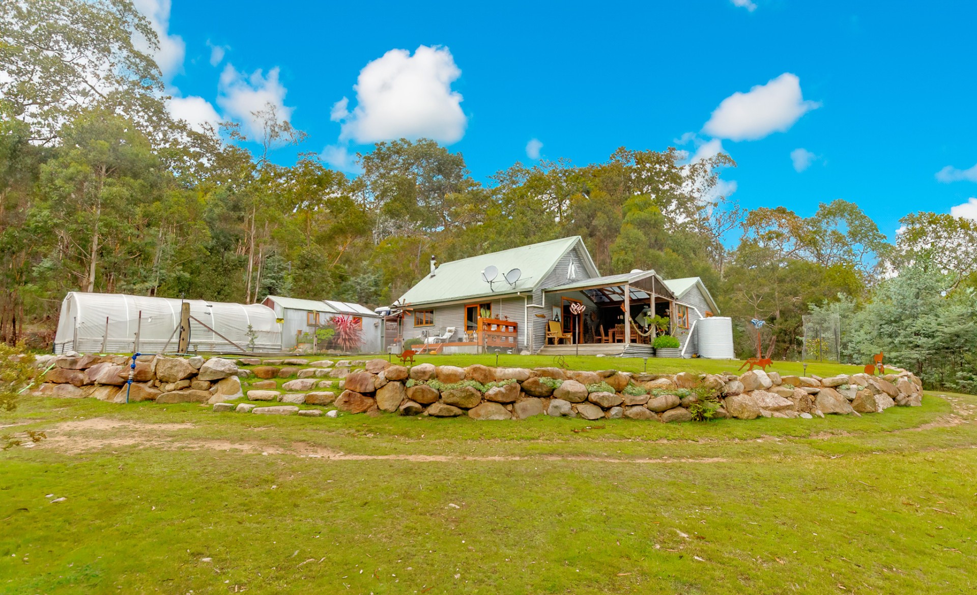 With 65,000 liters of water tanks and four mile creek flowing through the middle of this 5-acre property, called serenity water is never an issue. the septic tank and transpiration bed was replaced in 2019.