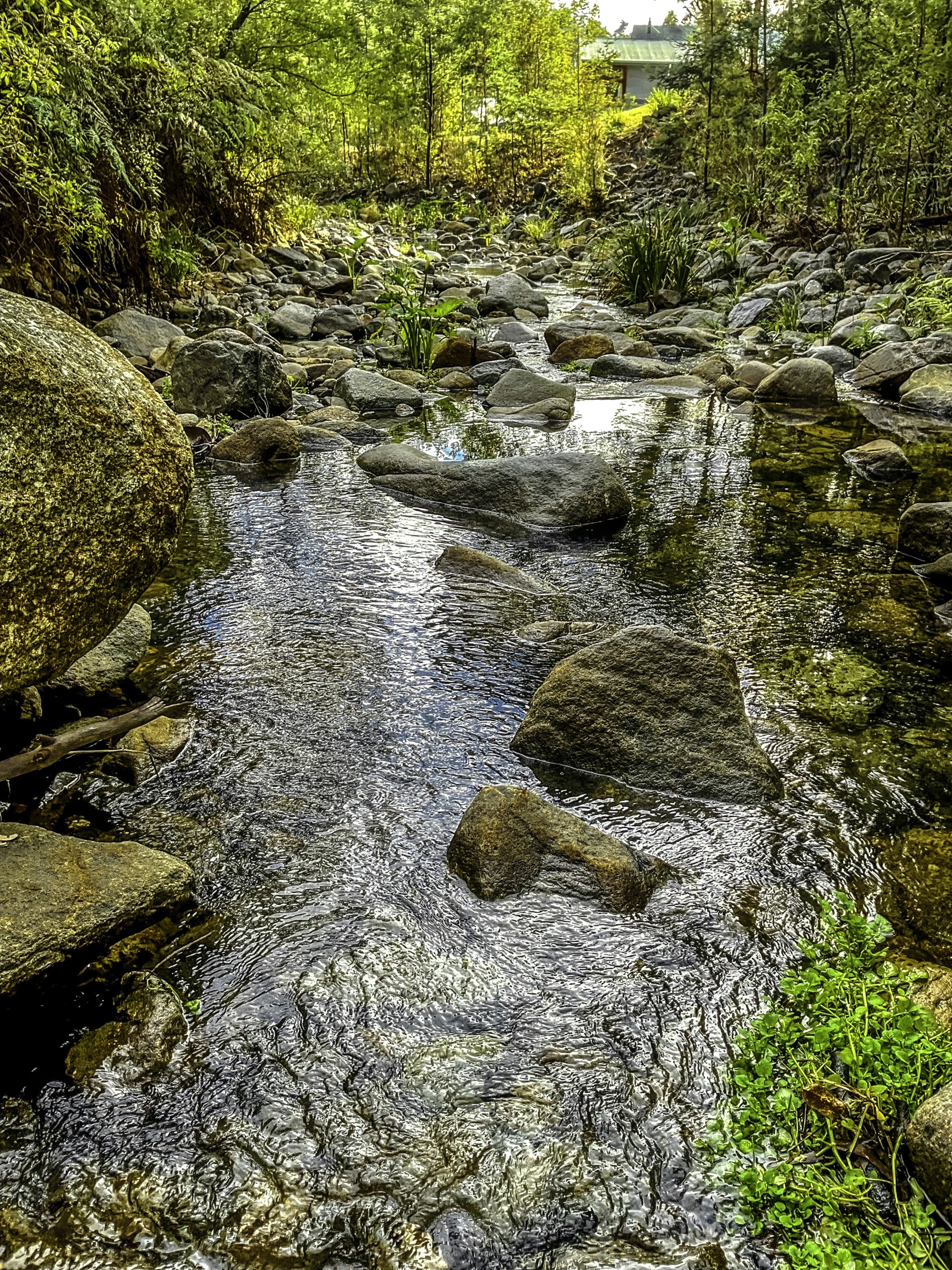 Over the creek there is an area, approximately 1 1/2 acres which is cleared and ideal for growing veggies, an orchard or whatever takes our fancy.