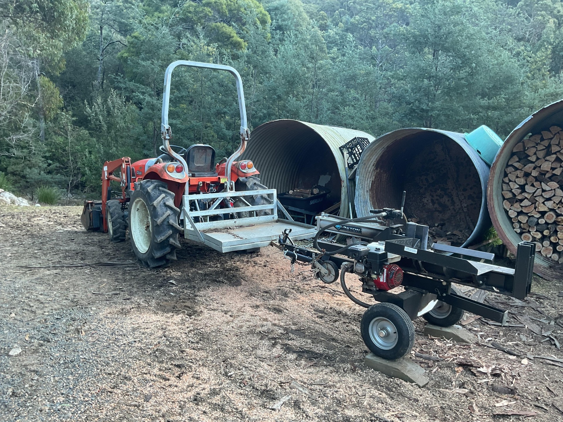 Going with the property is a 30 hp Daedong tractor with 4 in 1 loader, slasher and carry all. Honda fire fighting trailer and 20 ton log splitter.