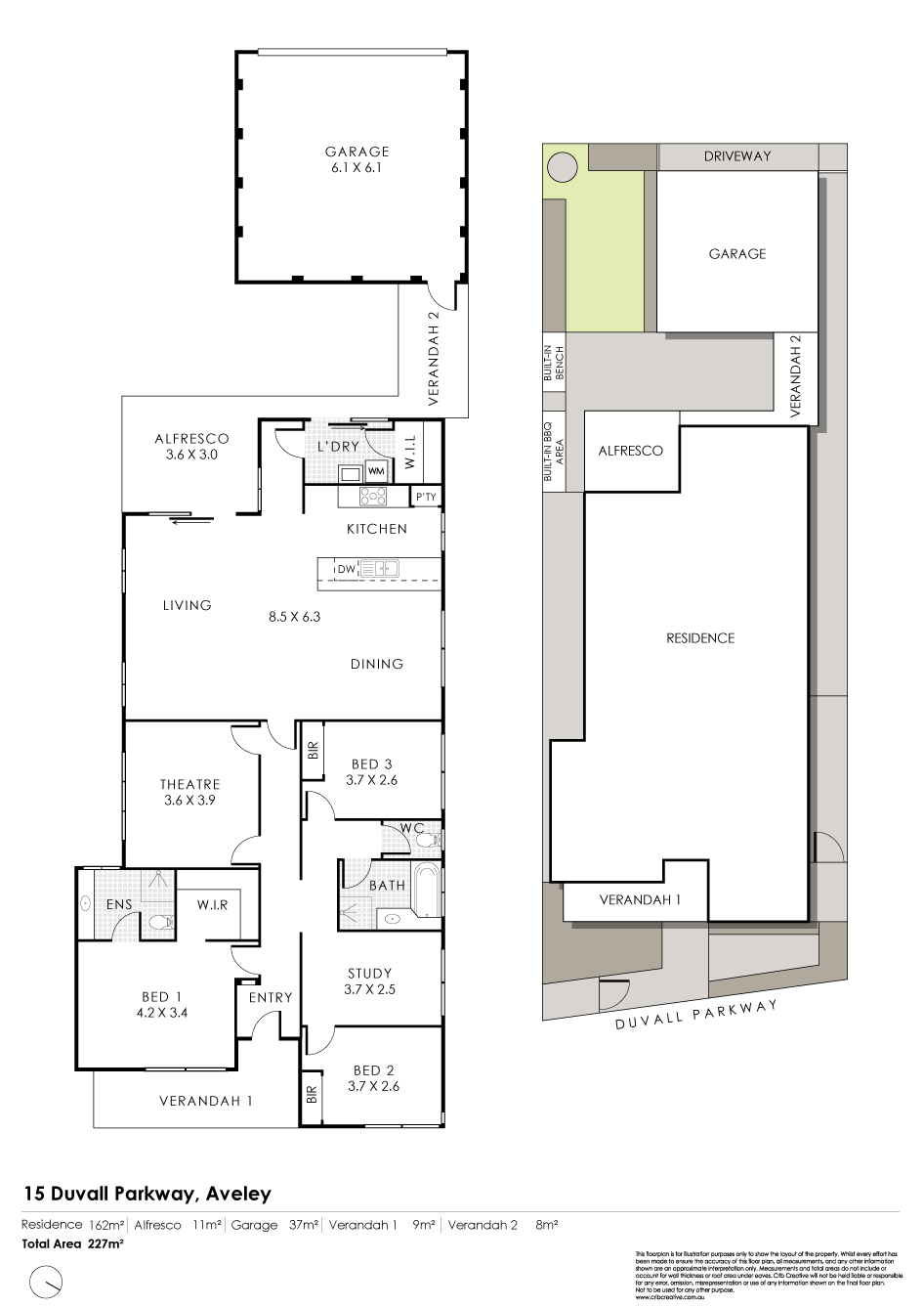 - Ceiling fans to the main living, theatre, and all bedrooms for added comfort