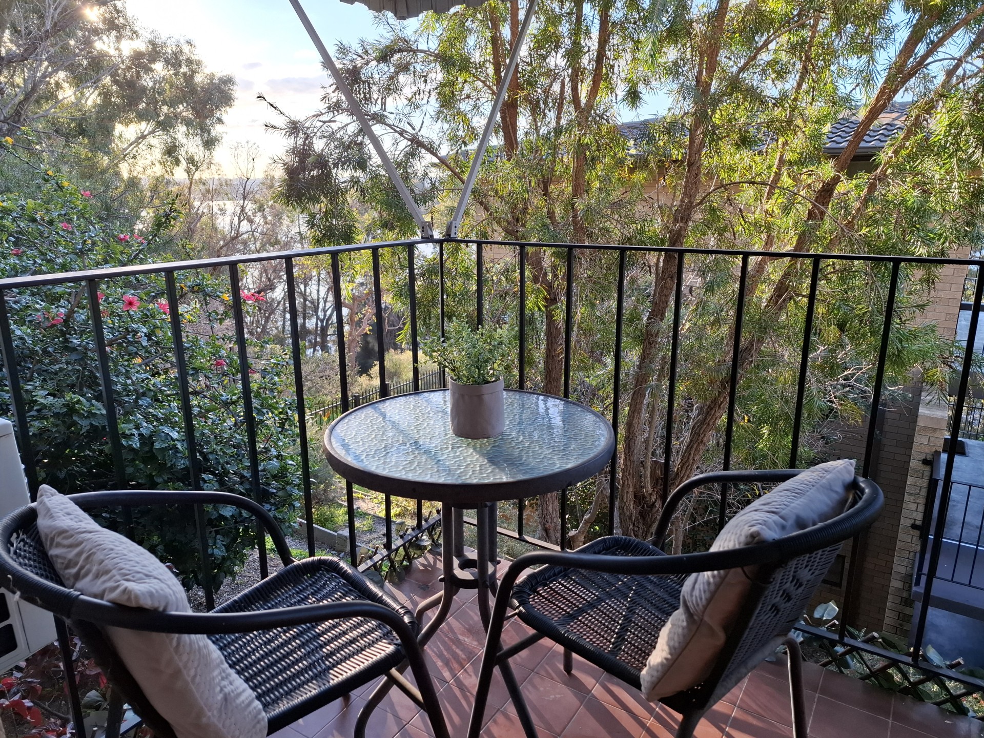 *The balcony overlooks the garden and lovely river view.