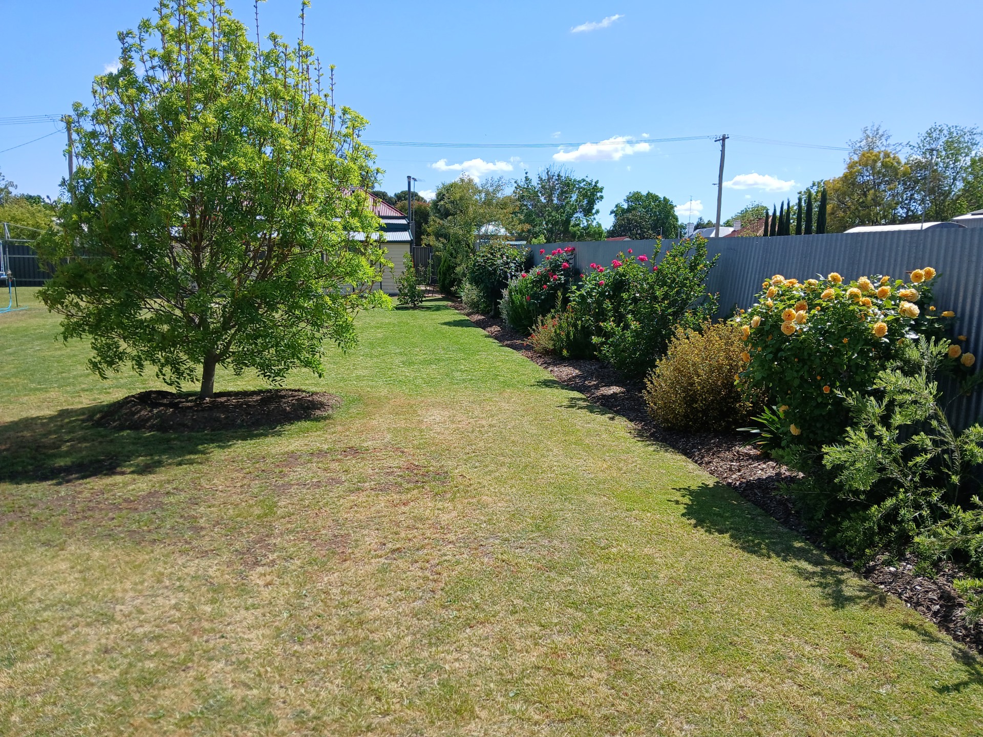 Beautiful clean yards , low maintenance gardens , only mowing required with Rear Lane access with inverted rear gates for easy caravan or trailer turn .