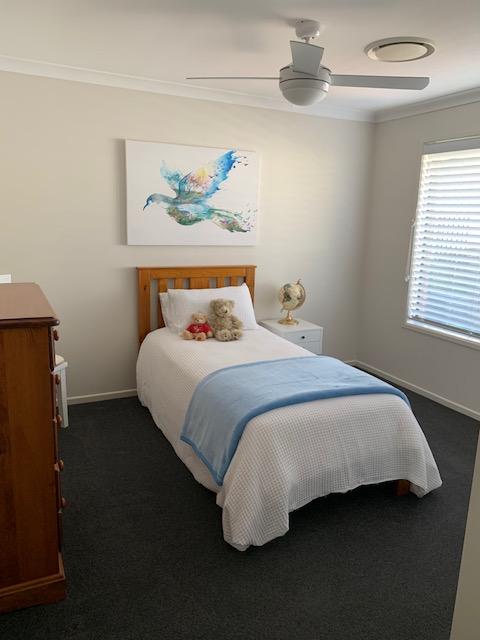 Consisting of large primary suite with oversized walk-in robe and ensuite with shower and separate bath. Adjacent to this is the office/nursery with built ins. Additionally there are 3 oversized bedrooms all with built ins and ceiling fans. Adjacent to the 3 bedrooms is a kid's activity room/teenage retreat that can be closed off. Main bathroom with separate toilet, media room and large open plan living/dining. Galley style kitchen with stone bench tops with waterfall edge, electric cook top, wall oven, dishwasher and walk-in pantry, Large outdoor living area with stratco 50% block out blinds that give privacy. The attached double garage has drive thru access to a 6x3m colour bond shed that is insulated and has power, both front and back yard have been meticulously landscaped and cared for and are very low maintenance. There are 22 solar panels on the roof (8kw) to help with the rising cost of electricity, two water tanks, one is 2000ltr for gardens and the other is 3000l for laundry and toilets, Gecko Security system, Fully Ducted Air thru out the home keeping everyone cool in the summer and warm in the winter.