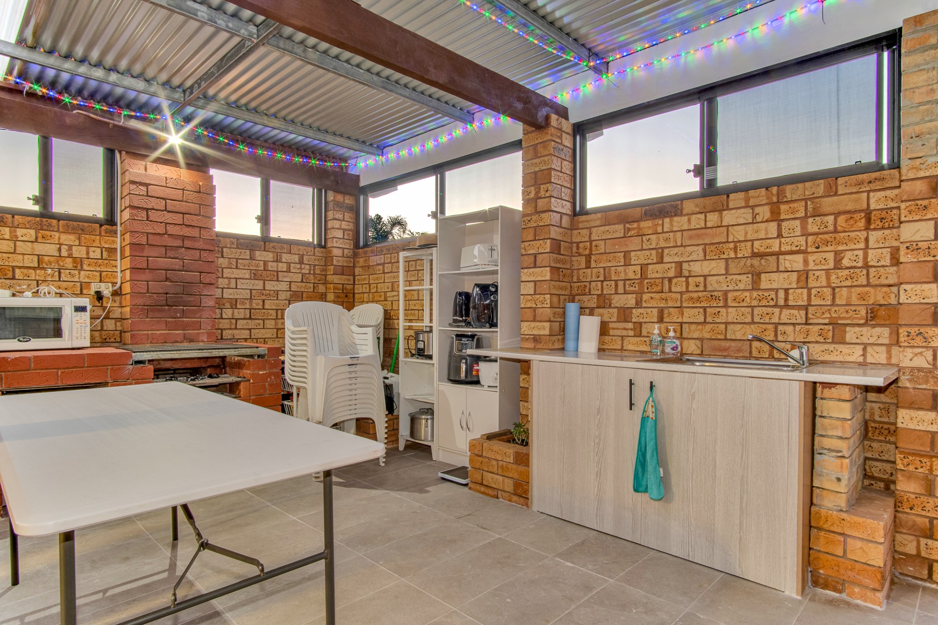 Upon entering, you are greeted by a thoughtfully designed, spacious sunken lounge that serves as the main living area, bringing everyone together in style. The heart of the home is the well-appointed kitchen featuring a pantry, ample storage, a second lounge or dining area, and seamless access to the extended alfresco entertaining area. The outdoor space is complete with a built-in BBQ, sink, lighting, and lockable doors for year-round outdoor dining and relaxation.