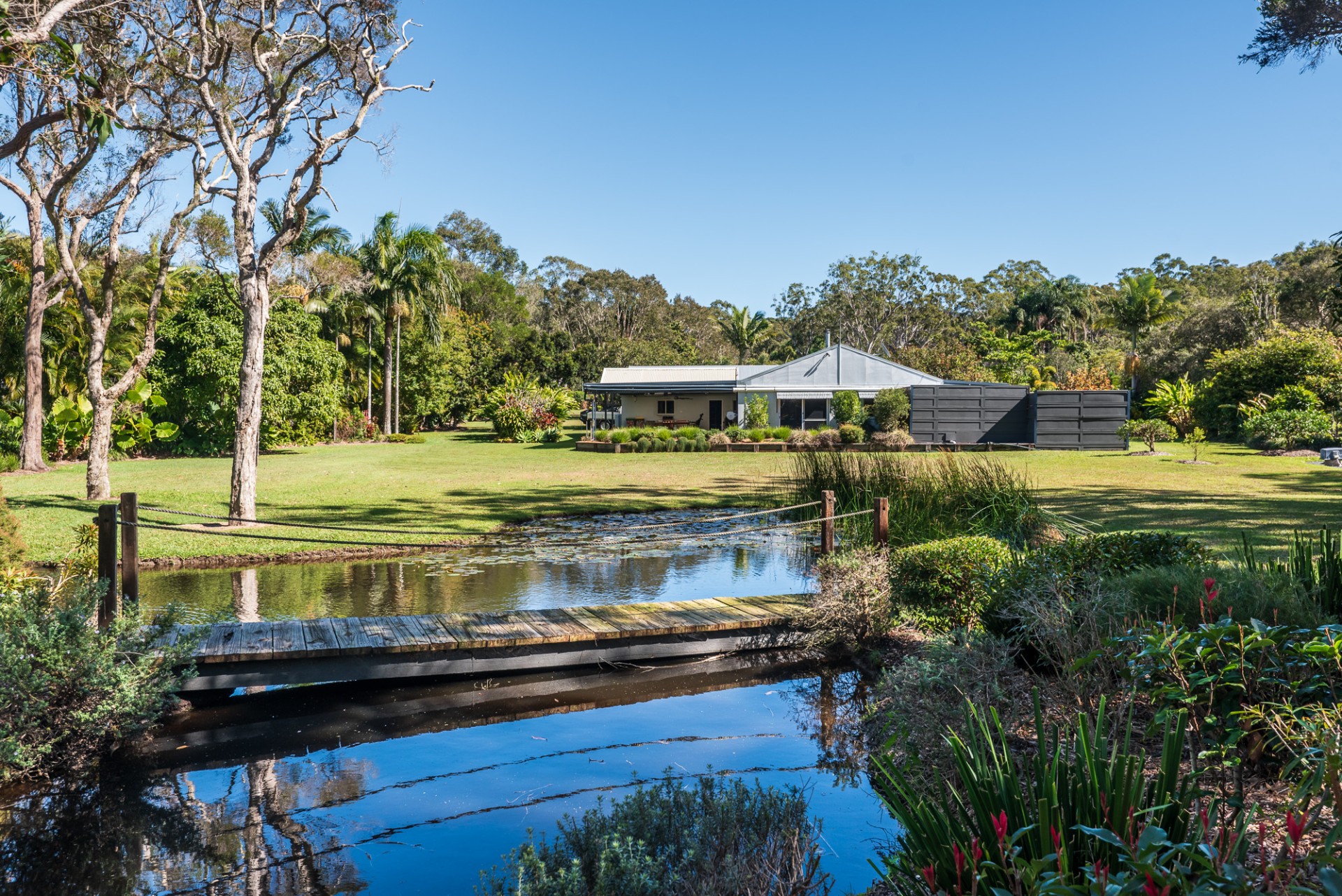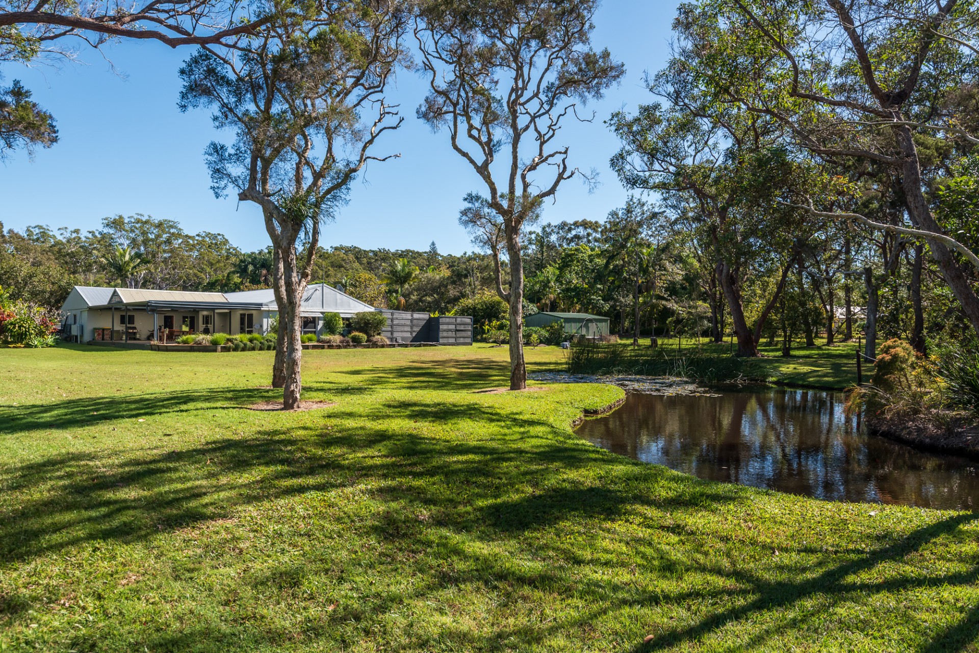 Set on 2.25 level acres, this property is a private and tranquil sanctuary. Beautifully established gardens surround the home, while a picturesque dam attracts an array of birdlife - including wood ducks, cormorants, herons, spoonbills, swamp hens and ibises. You'll also enjoy a productive mix of fruit trees, including mango, lemon, orange, and lime.