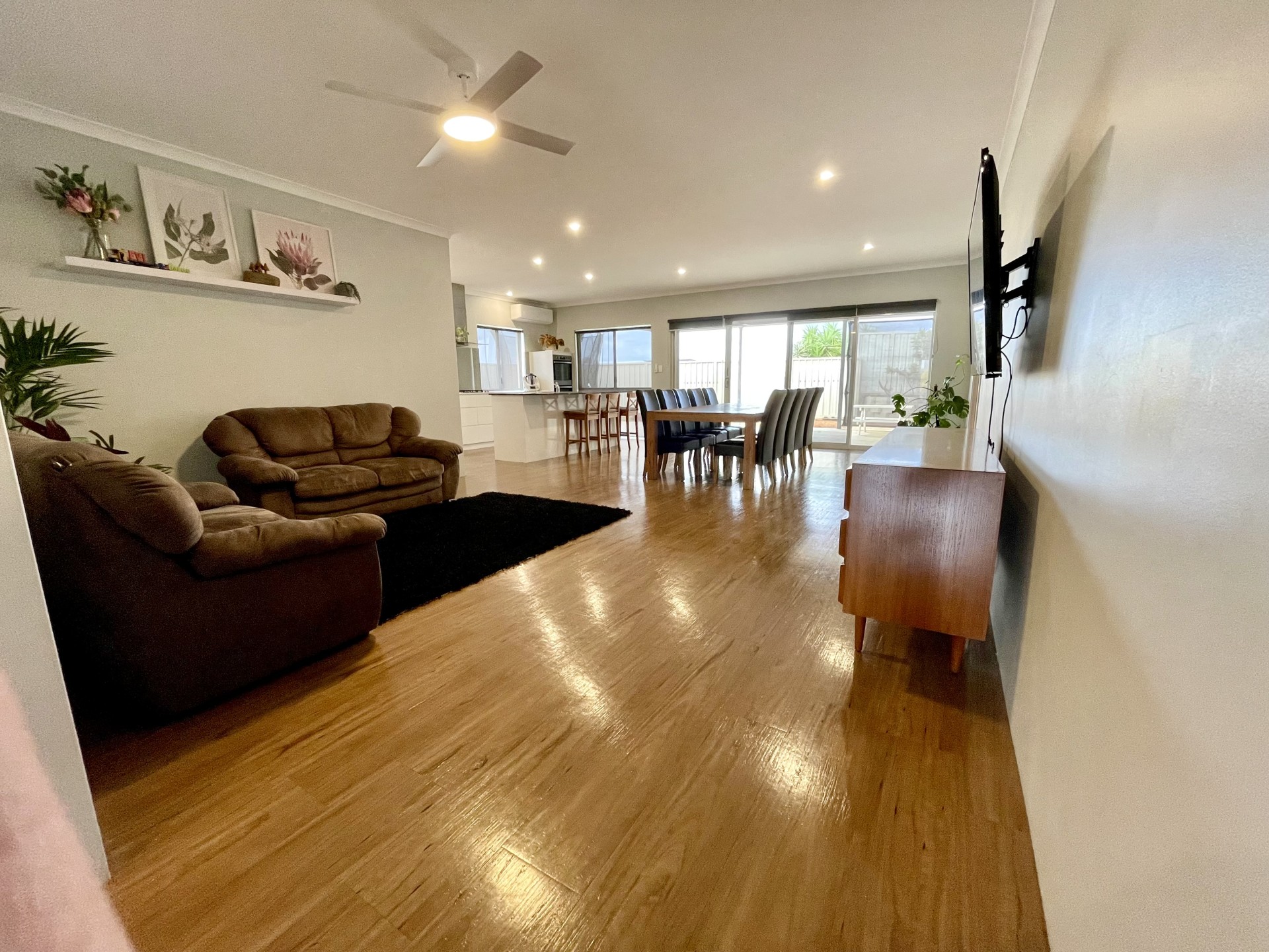 - Modern open-plan kitchen, dining, and lounge