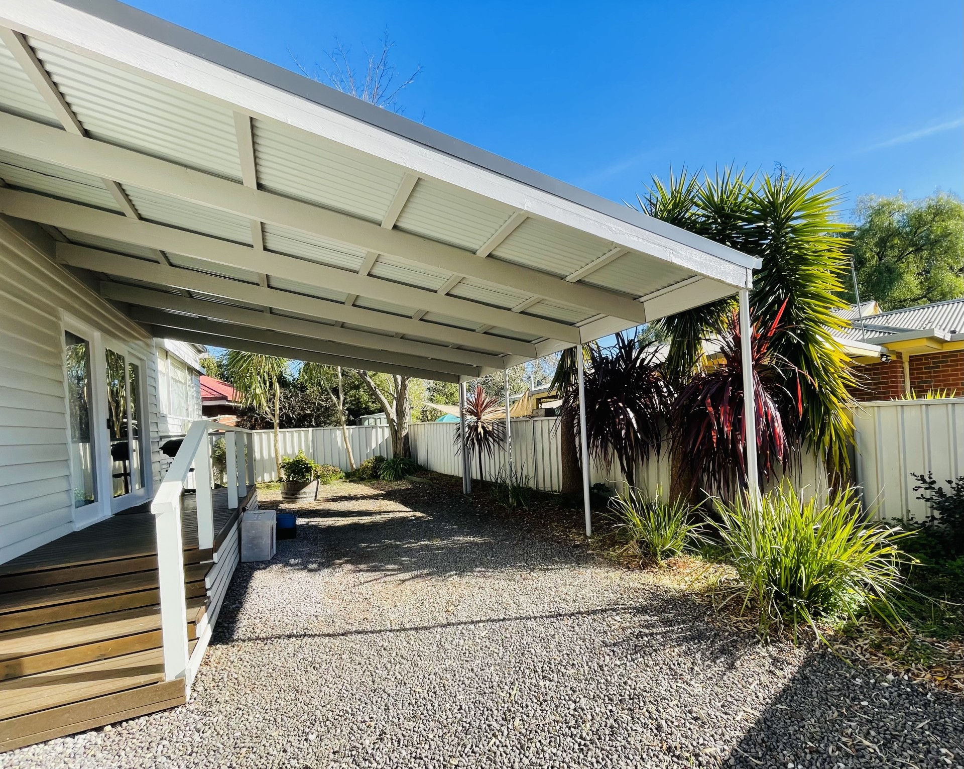 The home is accessed through the covered front verandah or the generously sized undercover carport, (6.6m x 5.m) which can if required accommodate 2 cars securely locked behind a gate.