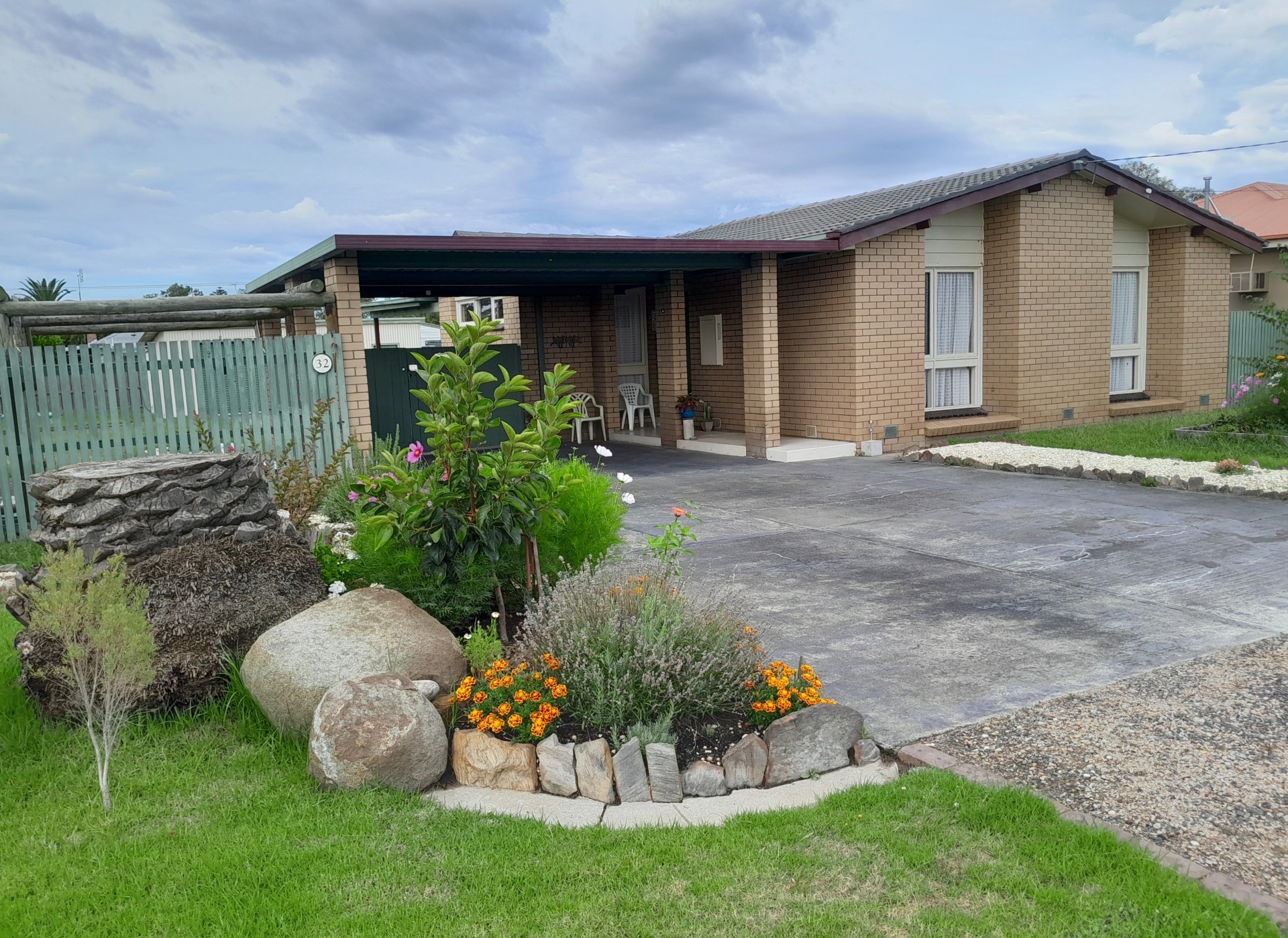 Mid-1970s brick veneer home with north and east sun orientation and east-facing verandah.