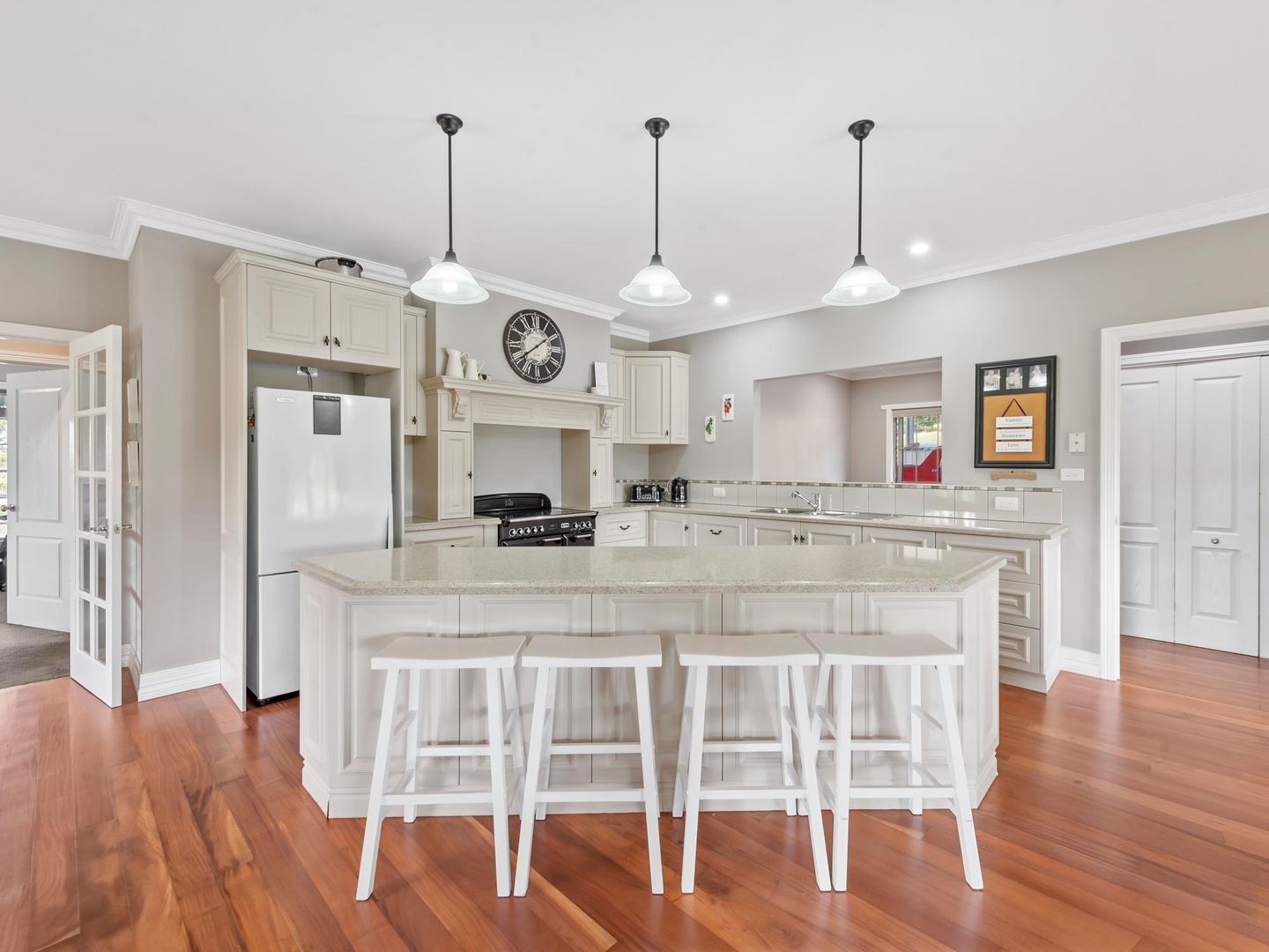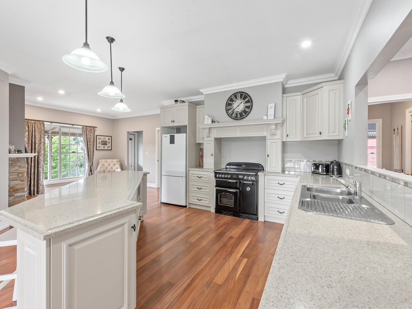 Inside, you'll find four double bedrooms (all with built-ins), including a master with ensuite. Light-filled living areas are centred around a well-equipped kitchen with integrated appliances and Falcon electric stove. The heart of the house flows into the dining, lounge, and sitting spaces warmed by a stunning Cheminee Philippe double-sided wood fireplace making this the perfect home for entertaining family and friends.