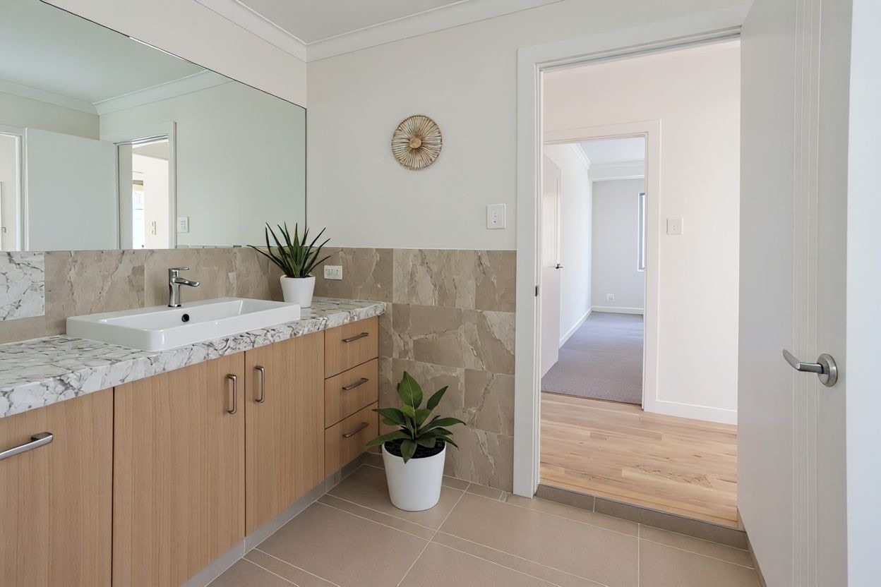 Step inside to discover a beautifully designed interior where every detail has been meticulously crafted. The kitchen is a chef's delight with elegant granite benchtops that extend seamlessly into the bathrooms and laundry. A dishwasher adds practicality to the space, making meal times a breeze.