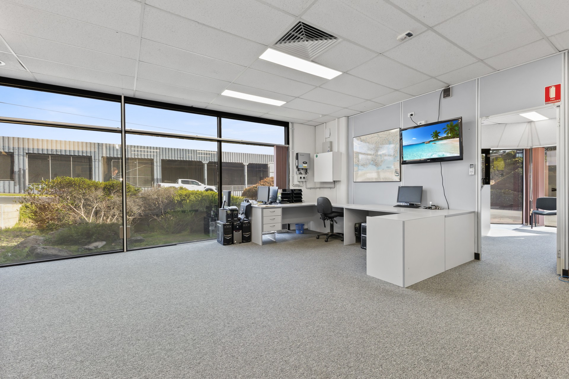 Infrastructure & Efficiency Features: Air conditioning throughout, Cat-6 cabling, air-conditioned server room, alarm system, tinted windows, and solar setup (6.6 kW with a 5 kW inverter) .