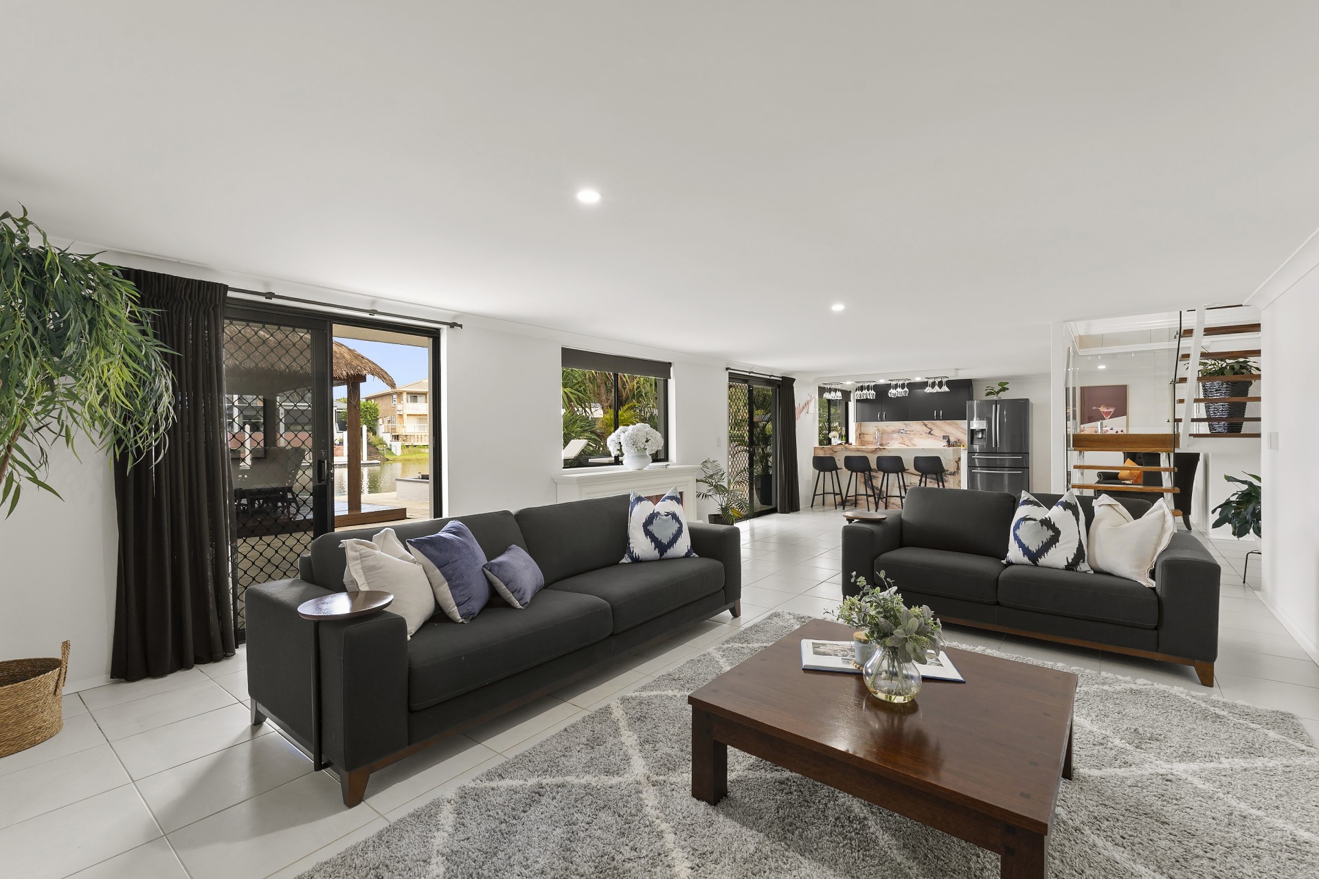 Nestled in the prestigious Oxley Cove, 16 Bosun Boulevard, Banora Point, presents a rare opportunity to own a waterfront haven that exudes luxury and tranquility. This stunning residence, spanning two levels, offers a seamless blend of elegance and comfort, with breathtaking river views that will captivate your senses.