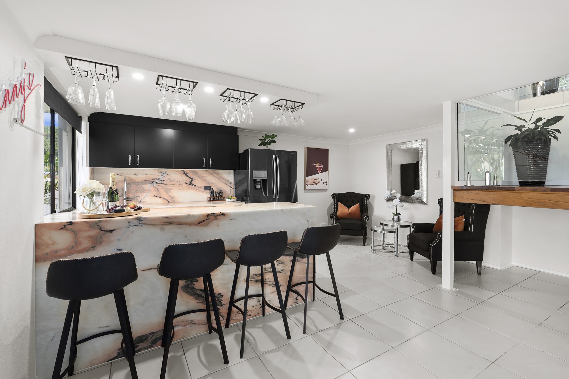 This home is a masterpiece of design, featuring multiple living areas that cater to both relaxation and entertainment. The upstairs living/dining space is bathed in natural light, creating a welcoming atmosphere for gatherings with loved ones. Downstairs, a spacious rumpus room awaits, complete with a beautiful backlit stone built-in bar - perfect for hosting memorable evenings with friends.