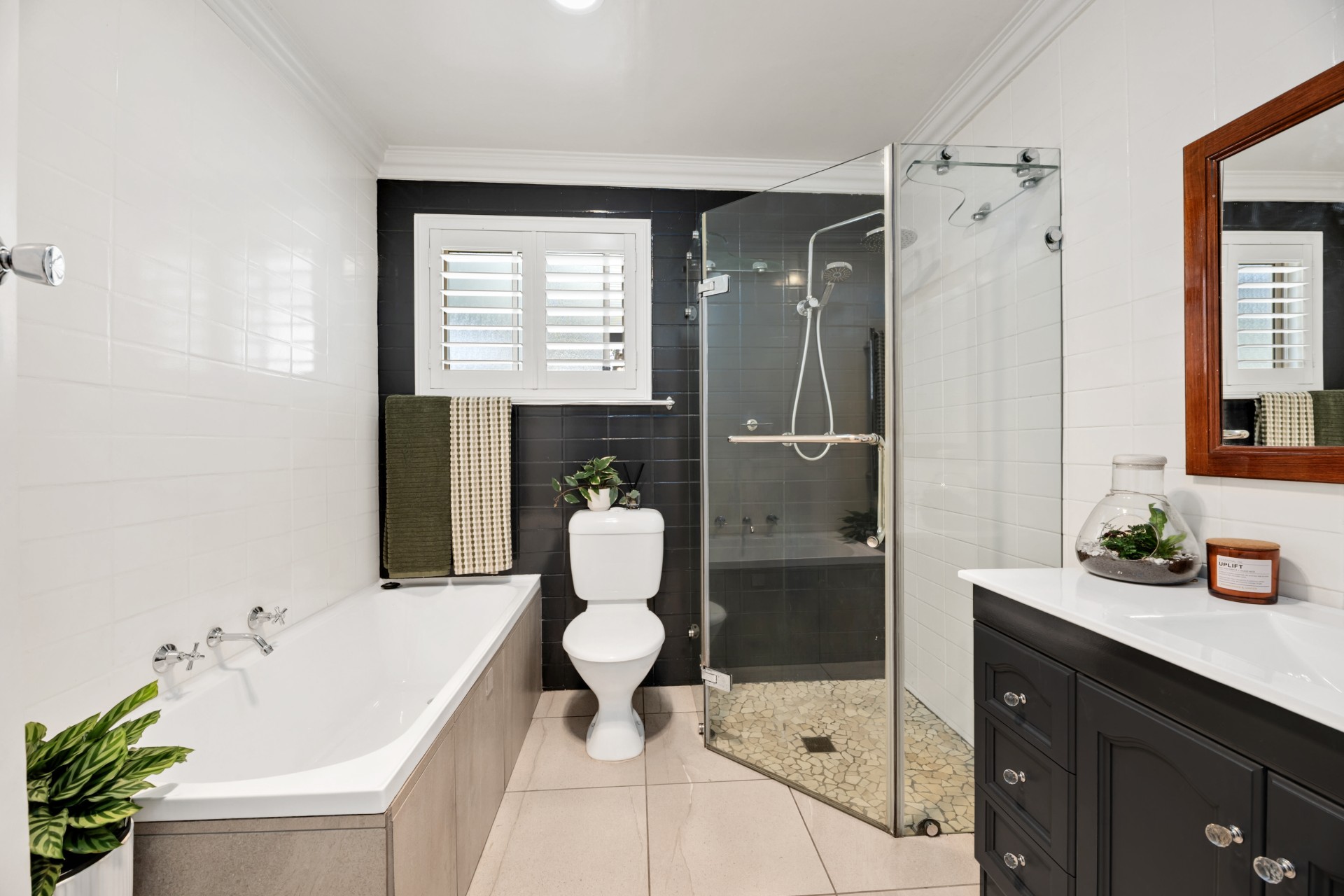 - Bathroom with separate shower and bath