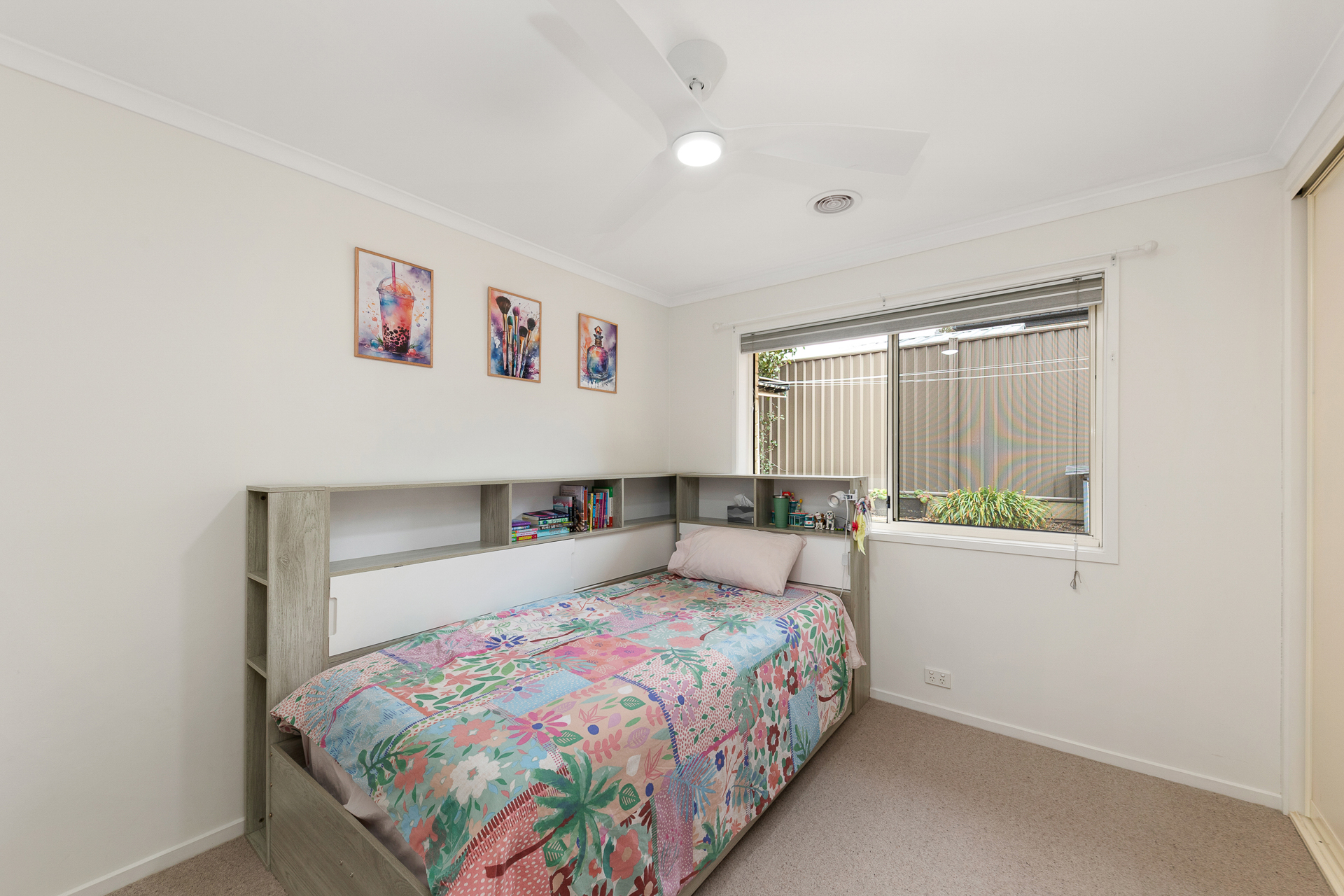 Built-in wardrobes, fans and blockout blinds in bedrooms