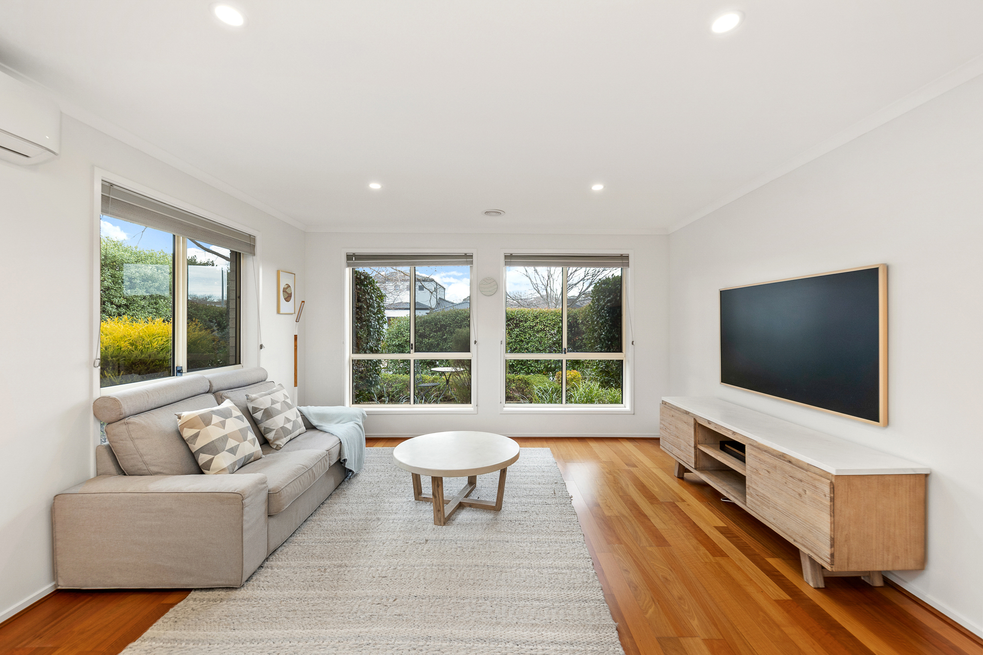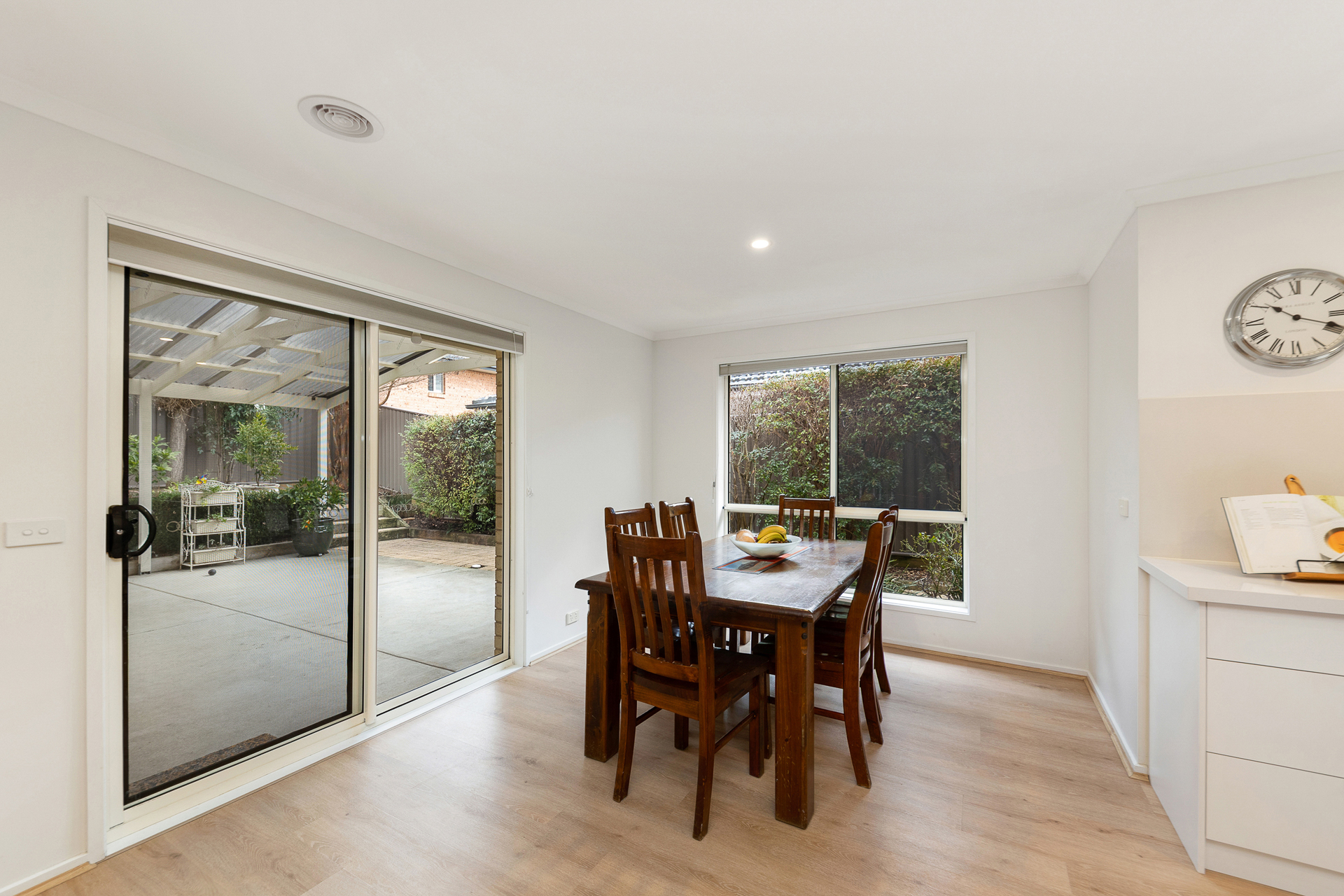 Two reverse cycle heaters/air conditioners to kitchen/study/dining and living areas