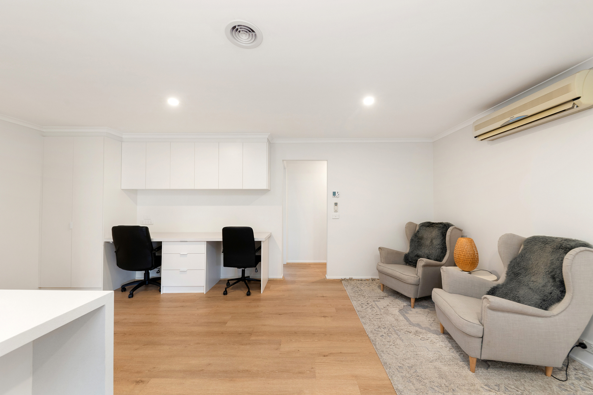 Separate study area with plenty of cupboard space