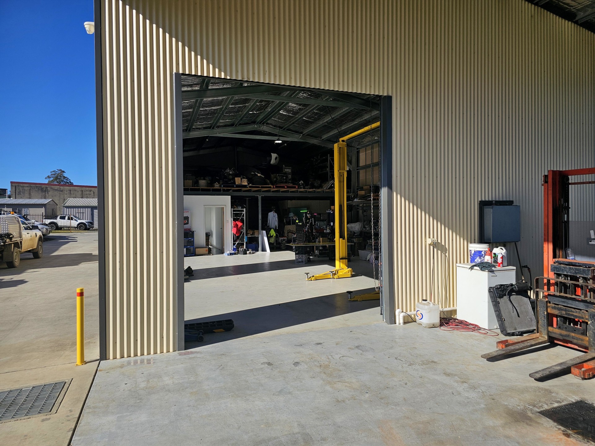 Upon arrival, you are greeted by a dual entry gated access from the main street, ensuring both security and accessibility. The 480m2 building is thoughtfully divided into two separate spaces, each equipped with its own bathroom facilities and mezzanine floors, ideal for accommodating two businesses simultaneously. The property's IN2 Industrial zoning (Lot 2/DP1153114) further enhances its versatility, opening doors to a range of industrial pursuits.