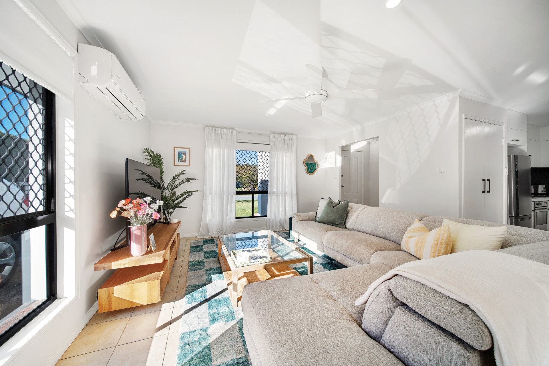 Three well sized bedrooms, including a master with its own ensuite, air conditioning and ceiling fans throughout, ensure comfort year round. Security screens give peace of mind, while the split system air conditioning in the main living space makes it easy to keep cool during summer.