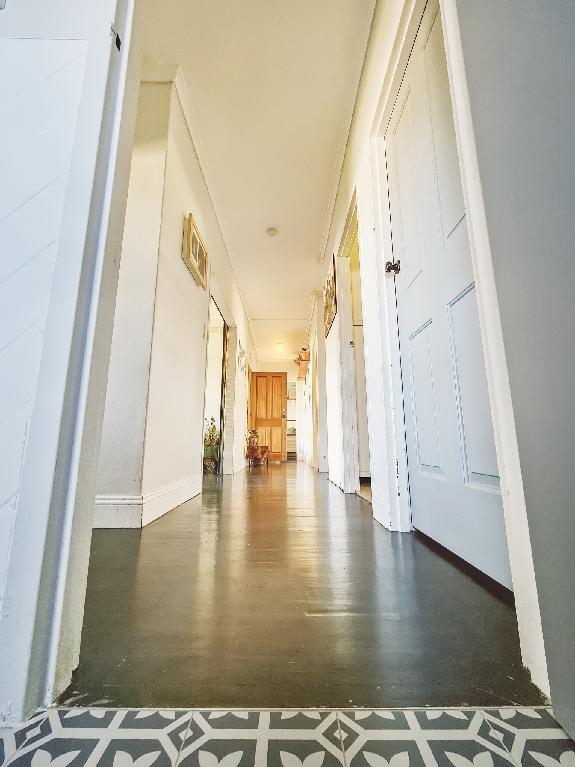 Grey-wash solid timber flooring throughout