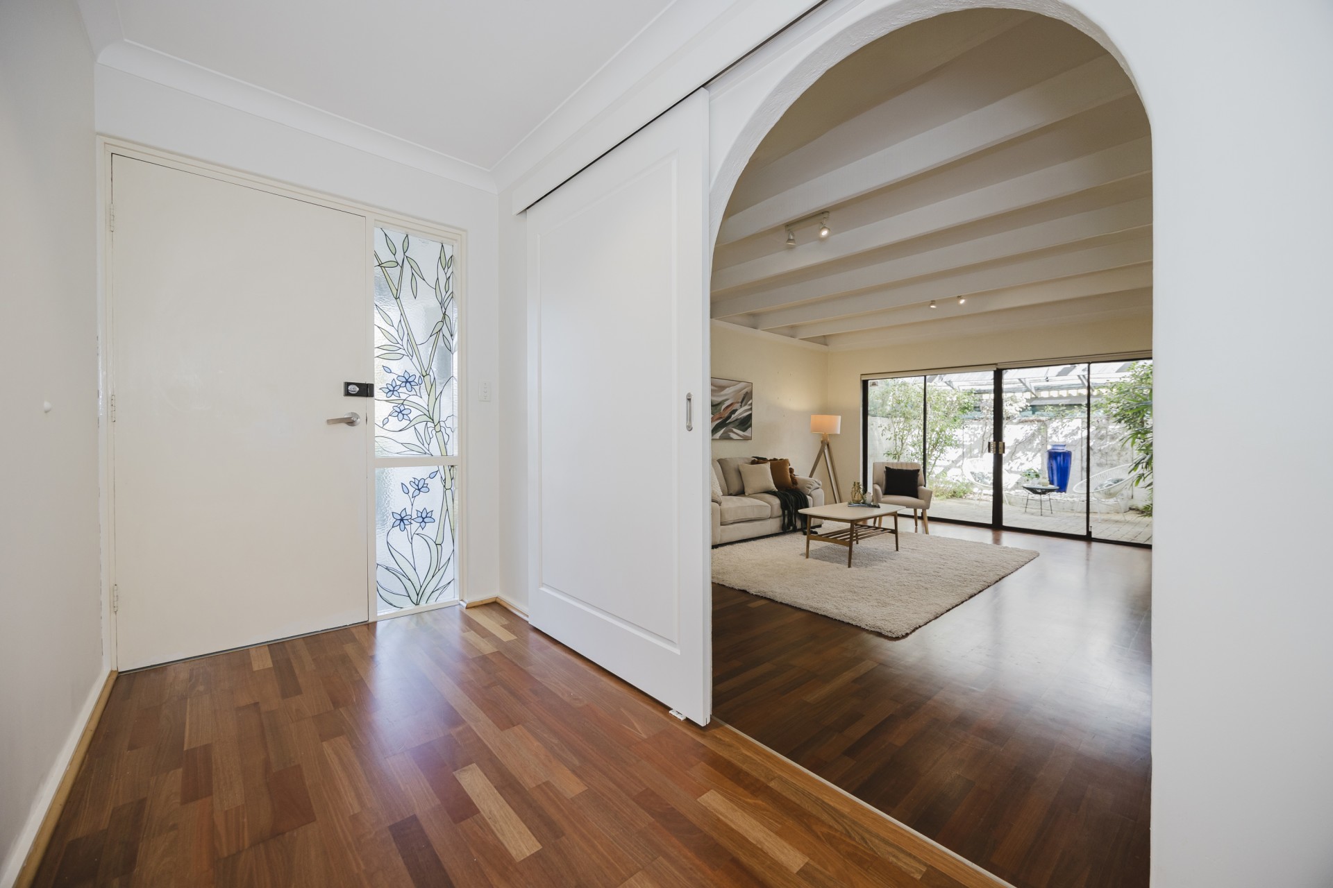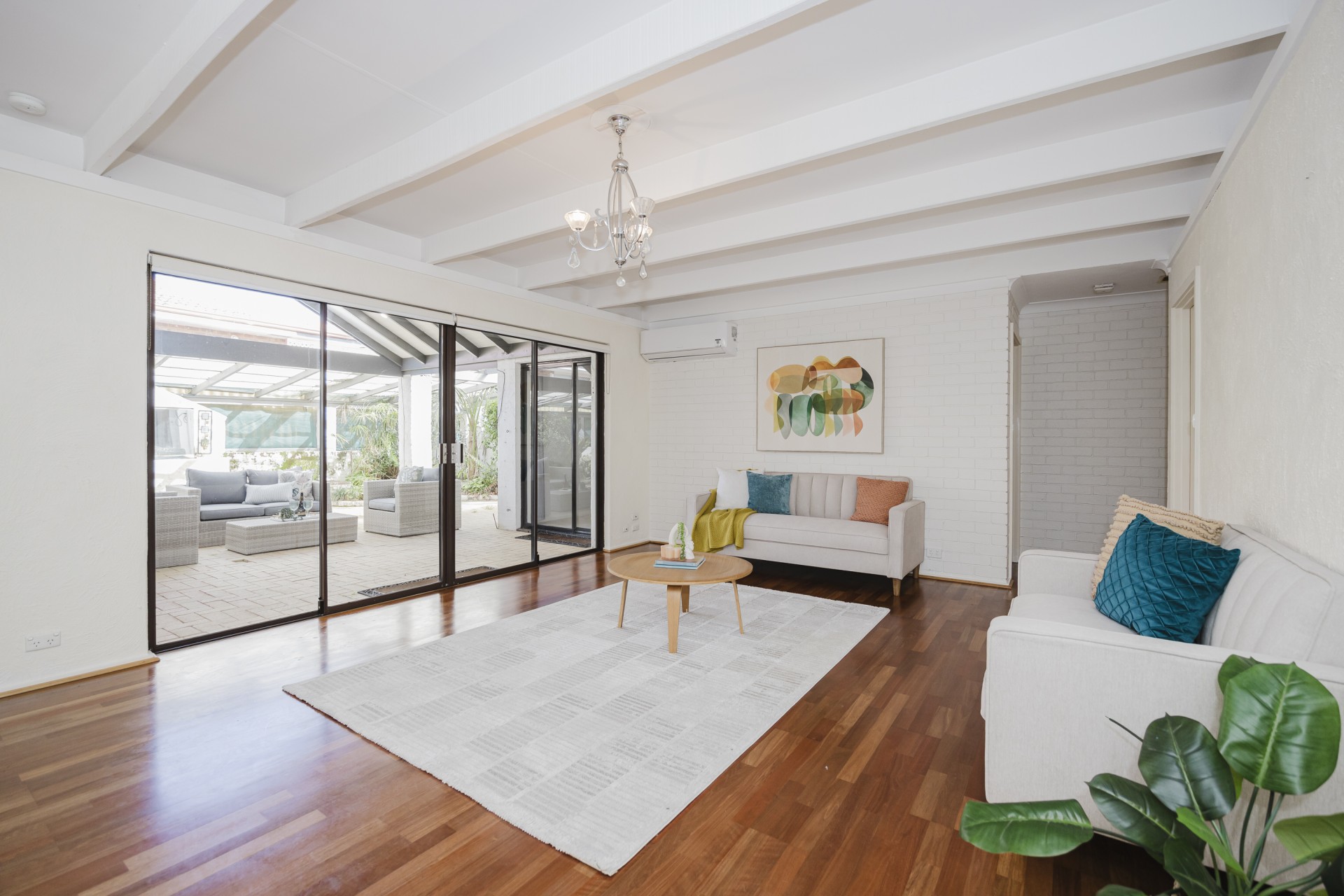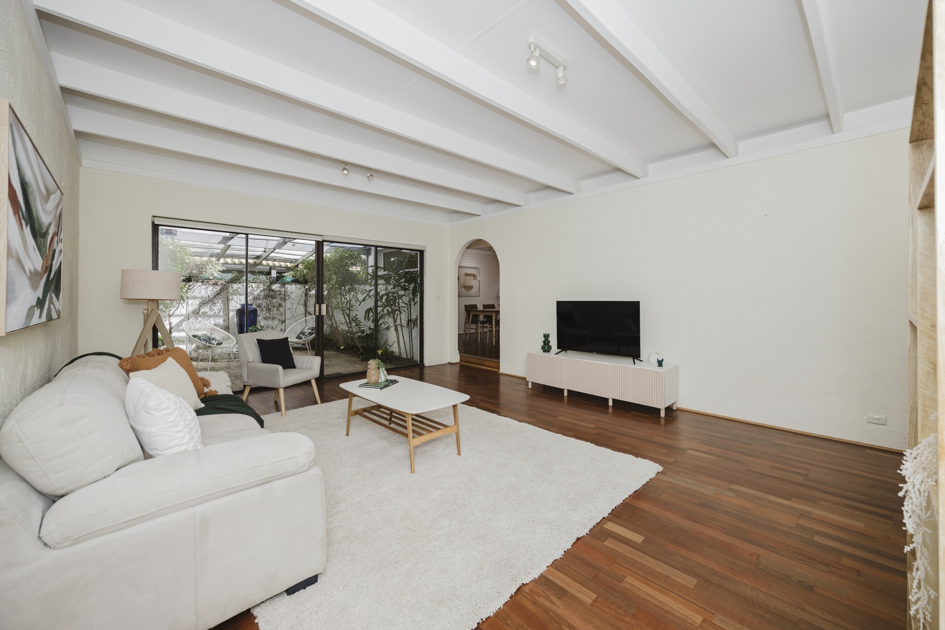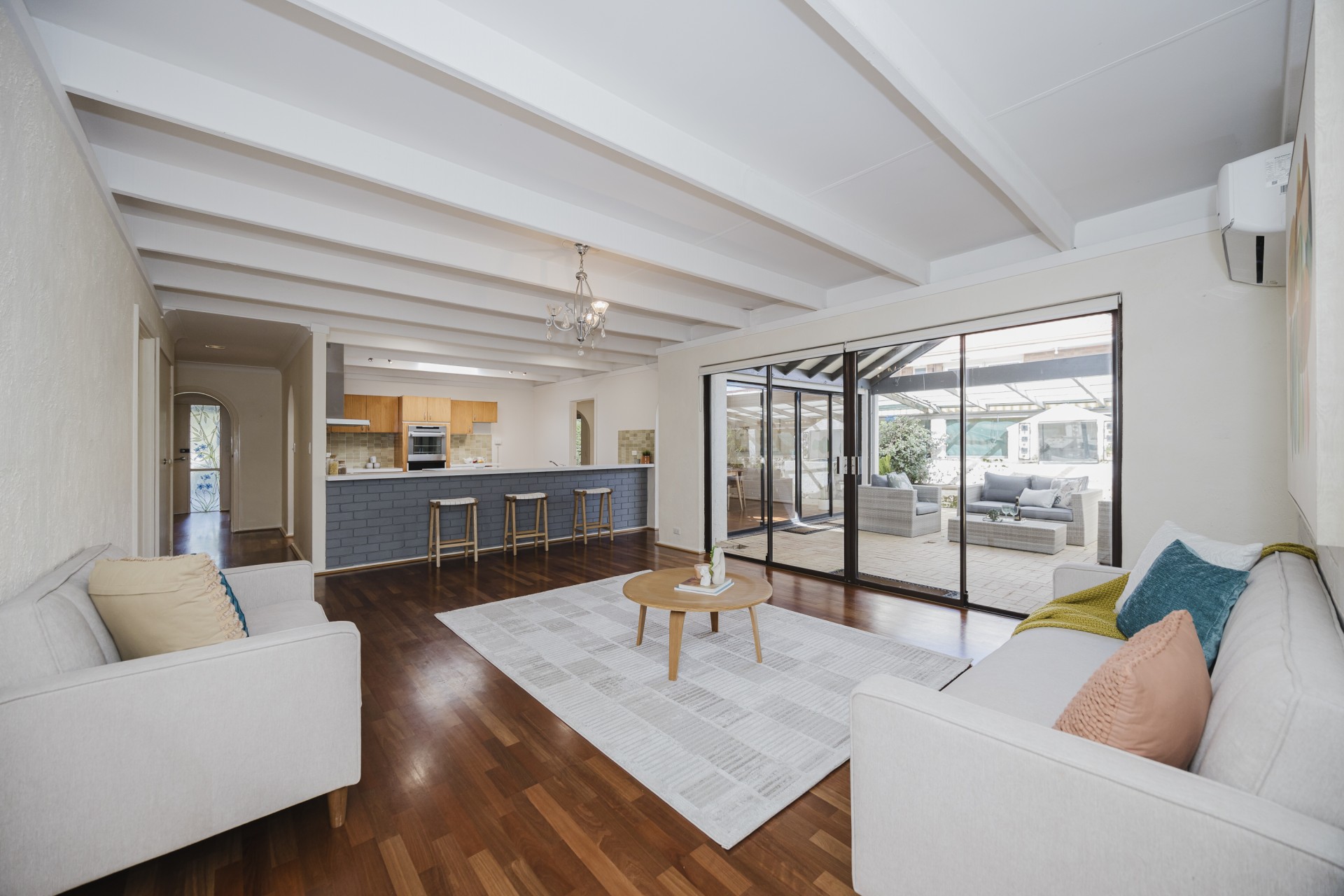 Polished floors throughout with carpeted bedrooms.