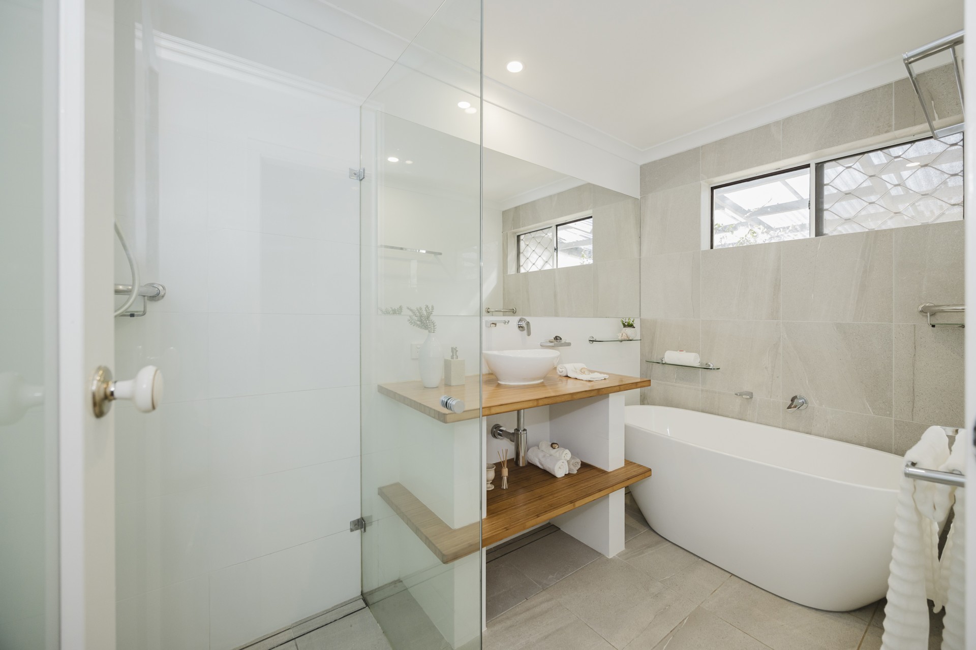 Full-sized free-standing bath.