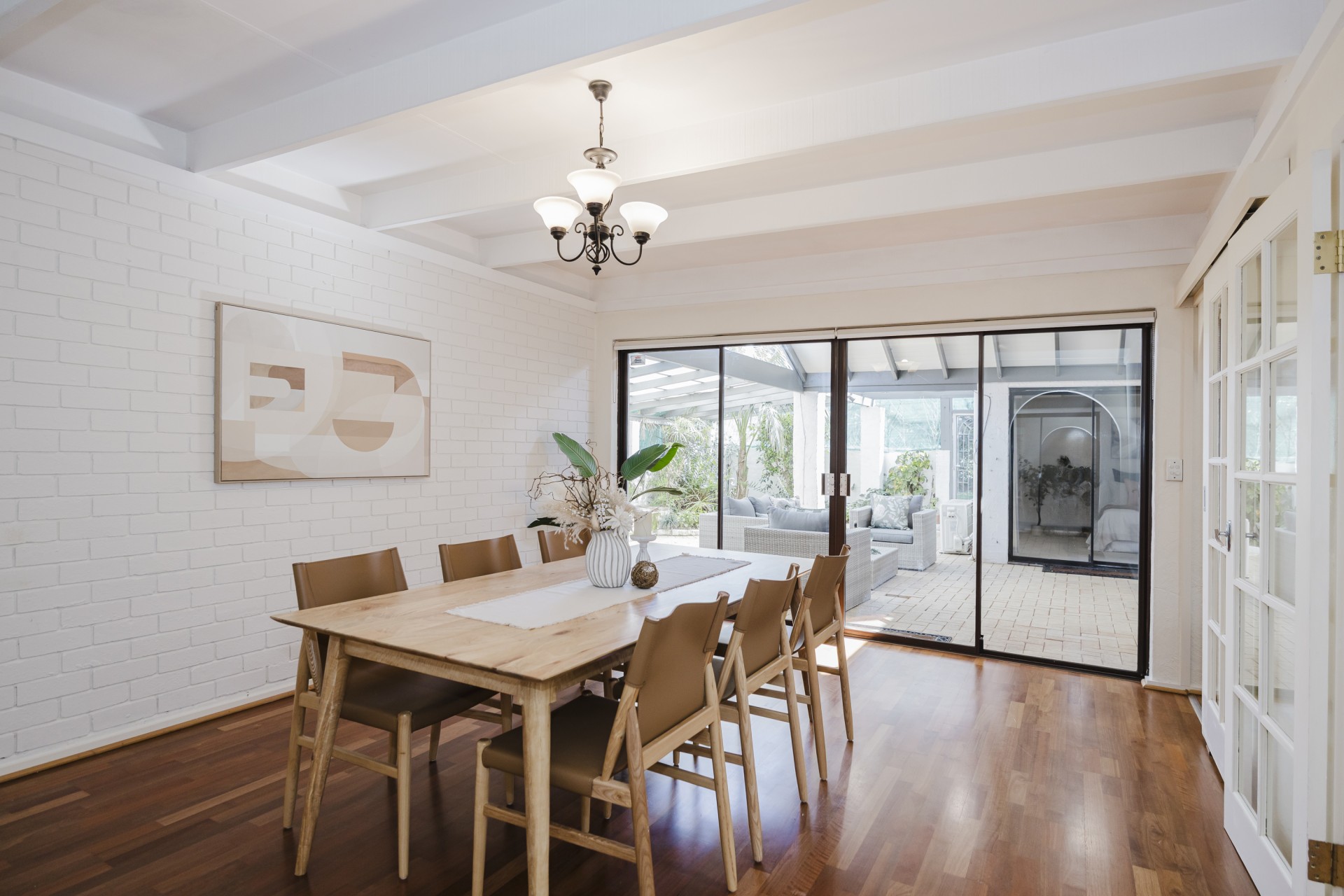 Separate formal dining room with glass sliding doors opening onto it's own patio area.