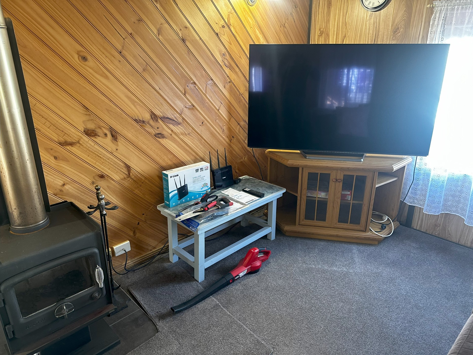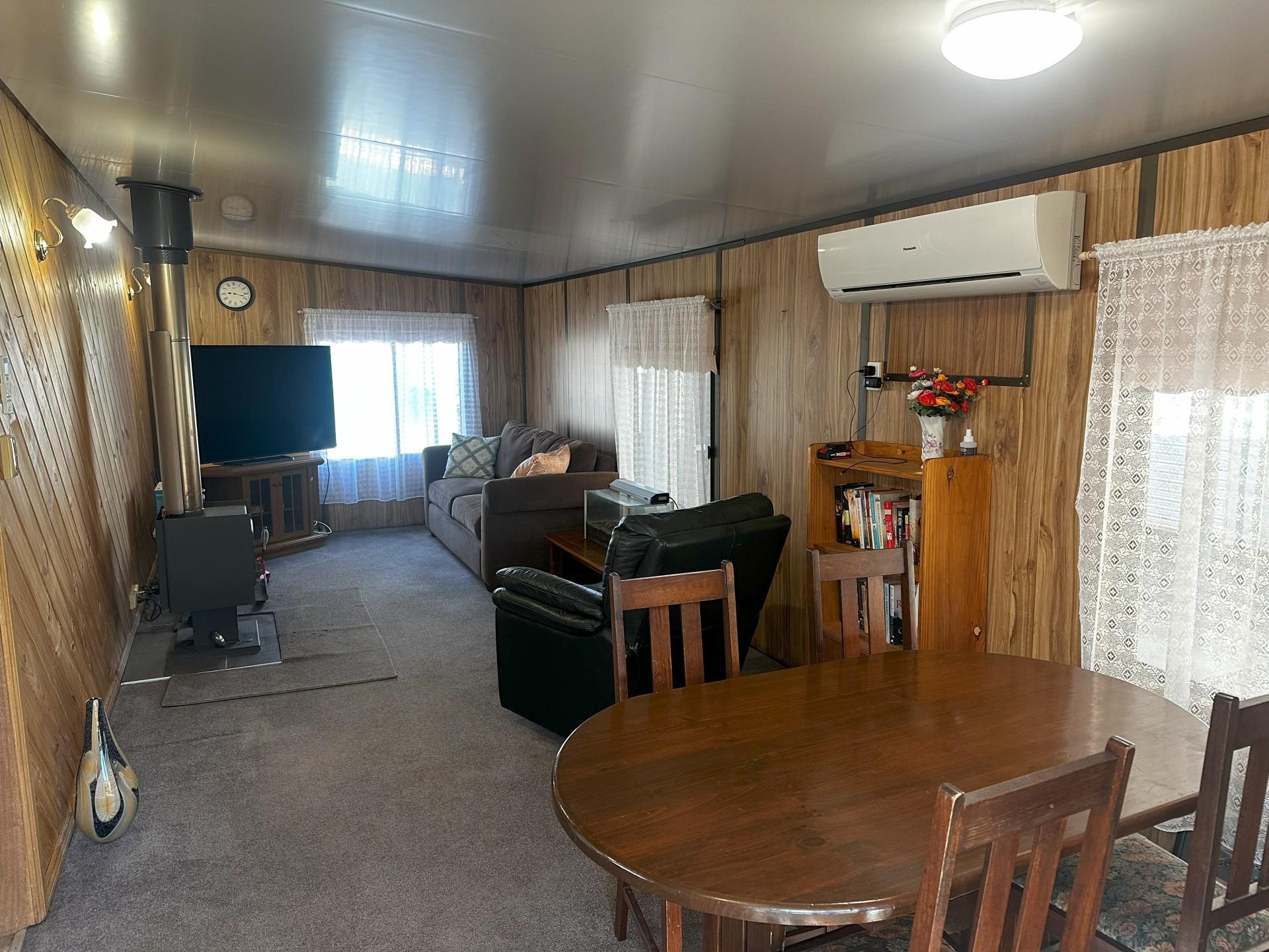 Lounge with large smart TV & wood heater