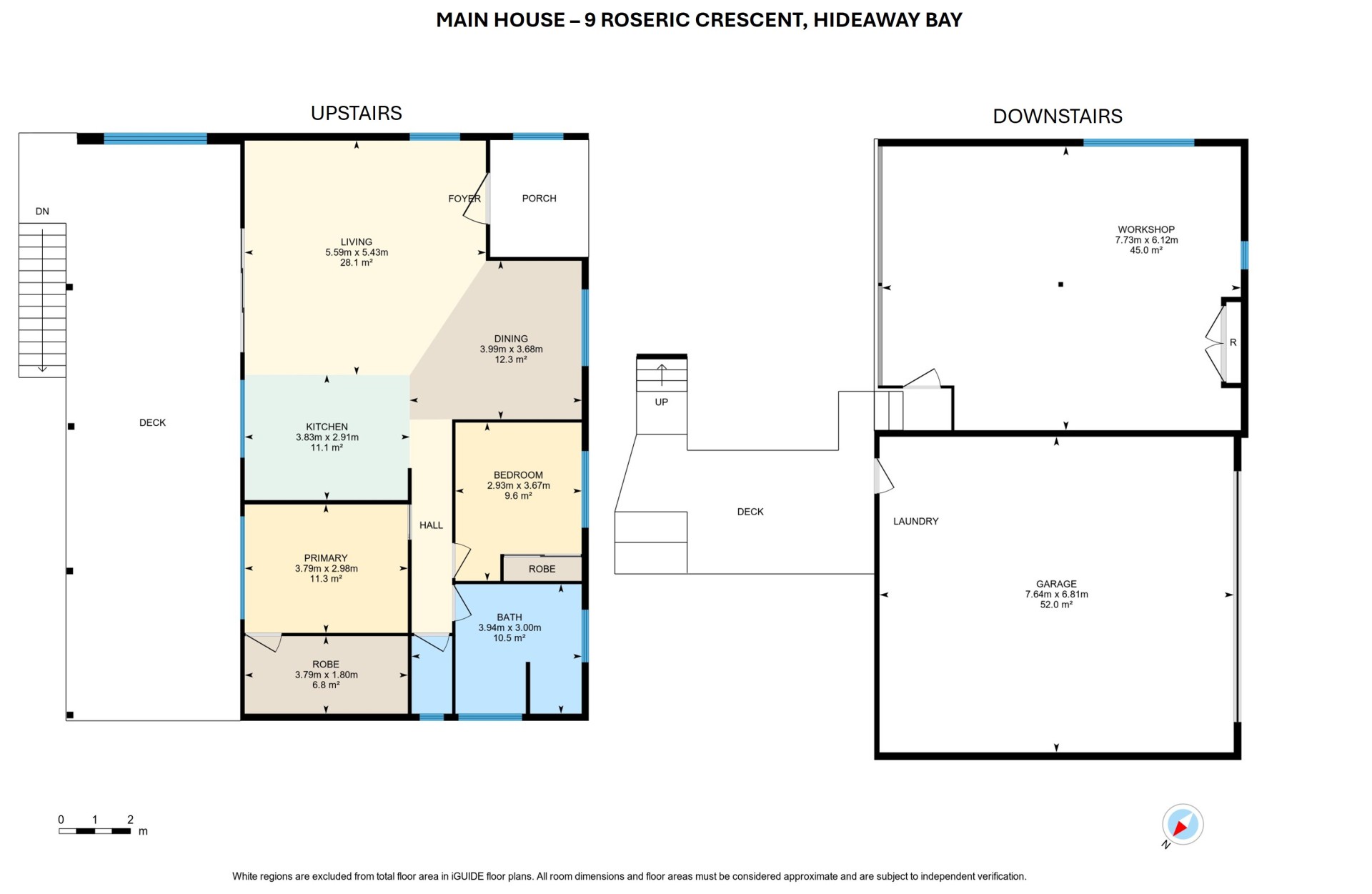 9 Roseric Crescent is a coastal property consisting of an elevated, single-level, two-bedroom house and a separate one-bedroom, fully self-contained cottage.