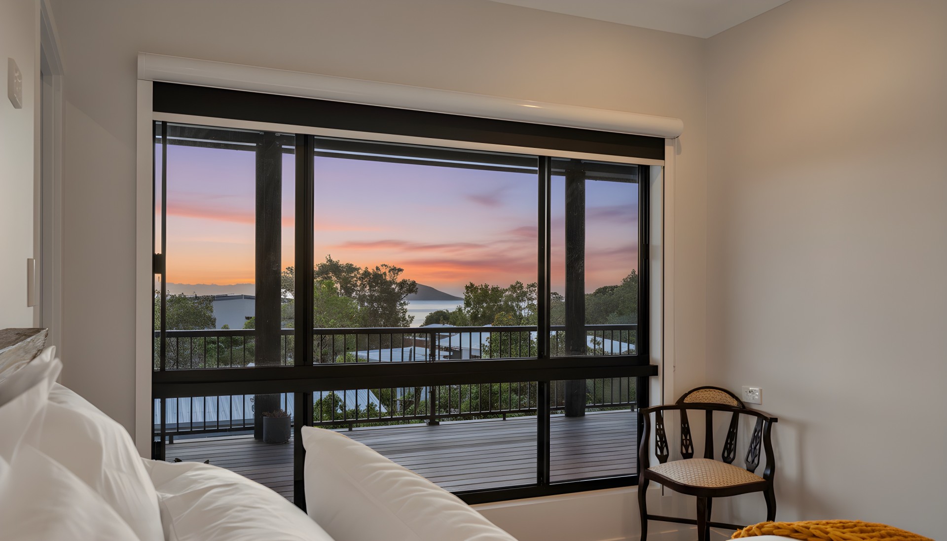 Enjoy the sun rising over Saddleback Island from the deck, lounge, kitchen and master bedroom of your new home.