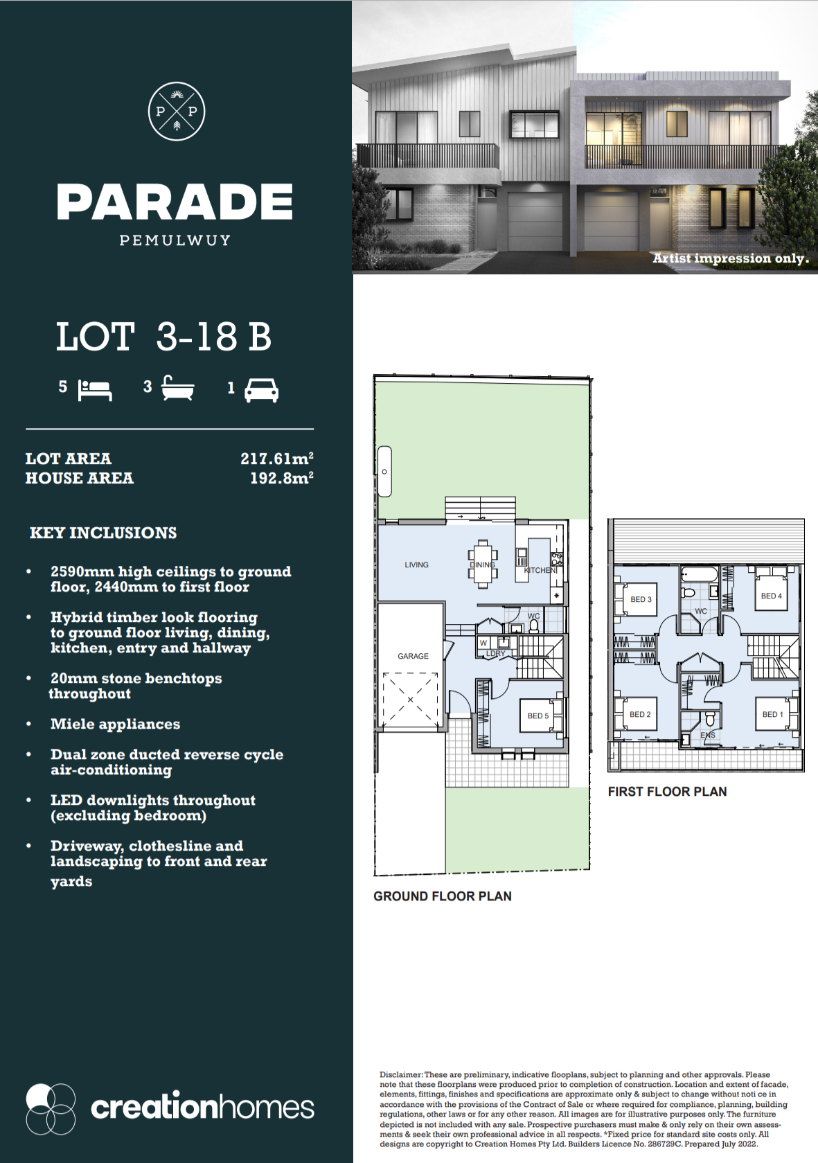 Layout: 5 bedrooms · 3 bathrooms · 1 lock-up garage + driveway parking · flexible multi-purpose room