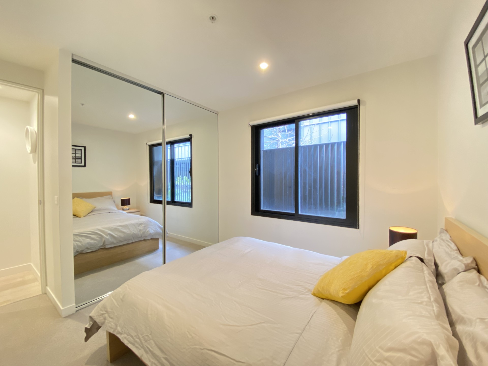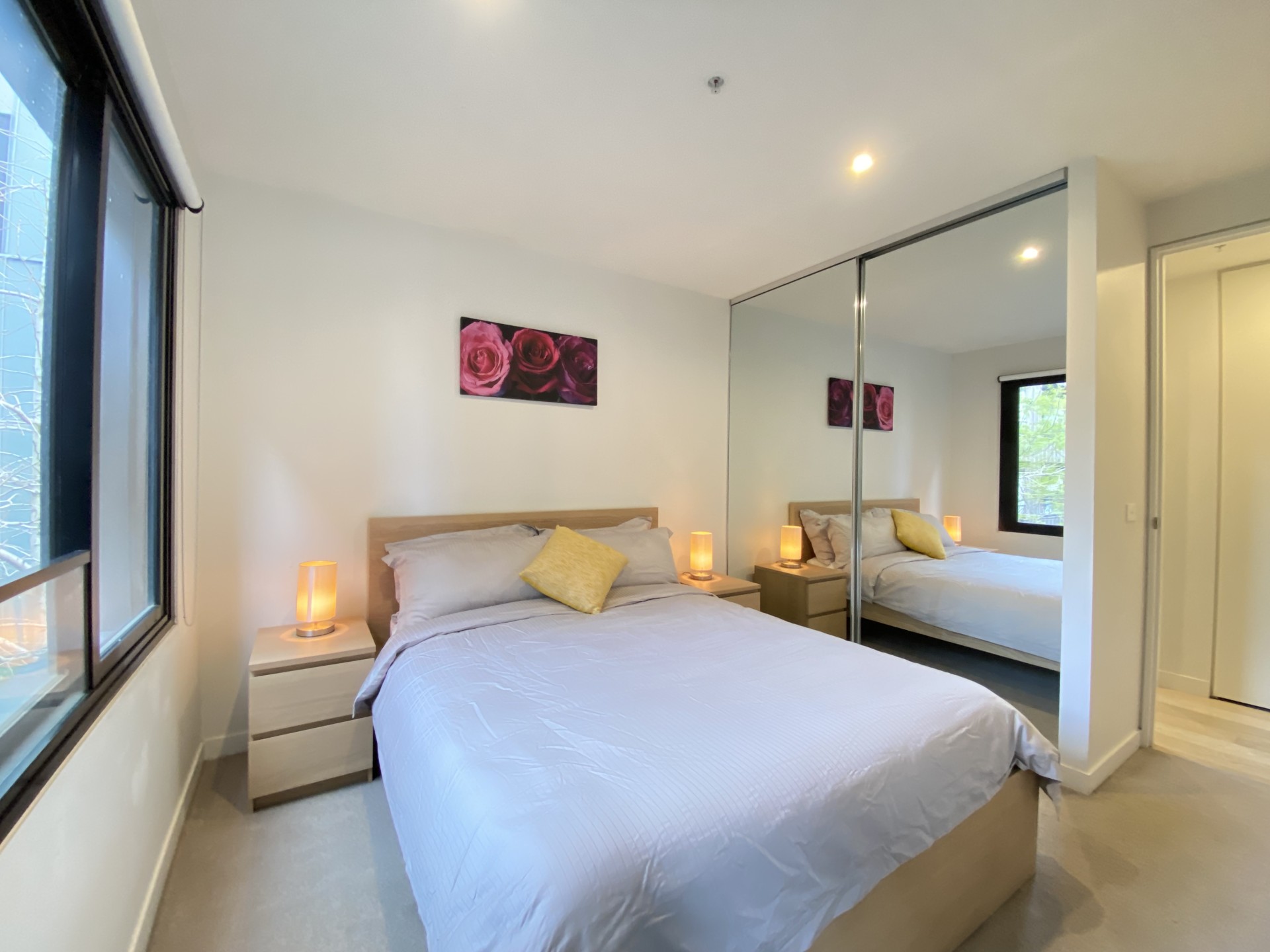 Set on the first floor, this corner positioned contemporary two bedroom apartment offers abundance natural light and attention to detail throughout. Spacious open plan living and dining area, private balcony overlooking central courtyard, modern engineering floorboard, stylish kitchen with island layout, stone bench tops, concealed fridge space, Smeg appliances, full size dishwasher and ample storage space. Both bedrooms with mirrored built-in robes and high-quality carpet, served by the central bathroom with frameless shower and floor to ceiling tiles. Double control fob access system, secure underground carpark and storage cage.