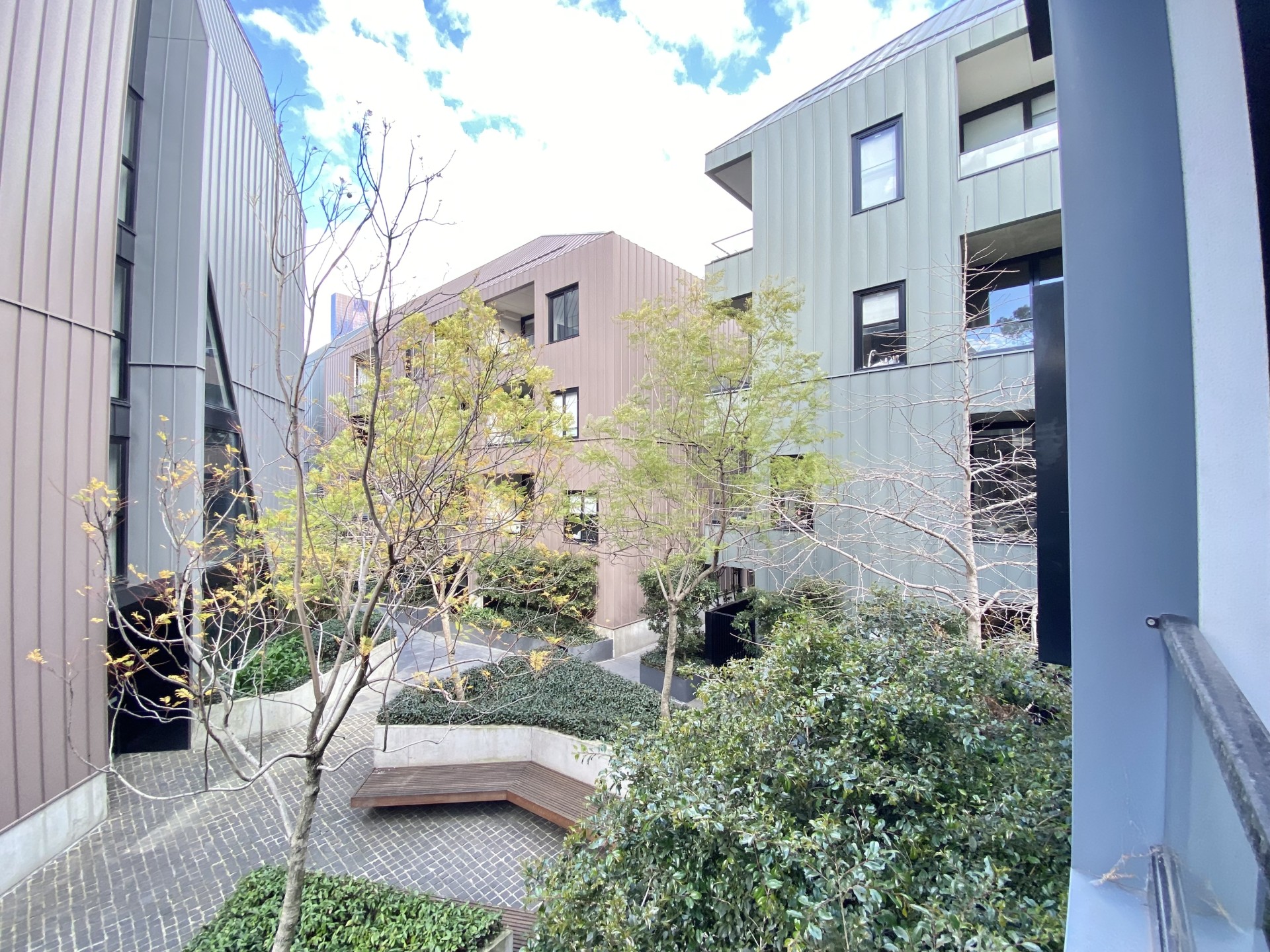 Ideally located on the edge of Melbourne CBD, the Woods Bagot designed Assmebly Apartments offer the convenience of fine city living whilst being connected to a vibrant community. Conceived as an assemblage of four individual high quality, low rise apartments, the village-like environment features individual laneways and a central courtyard.