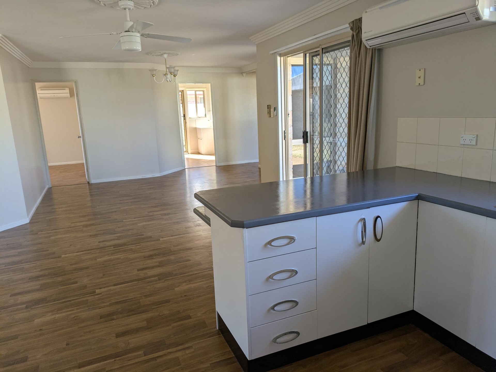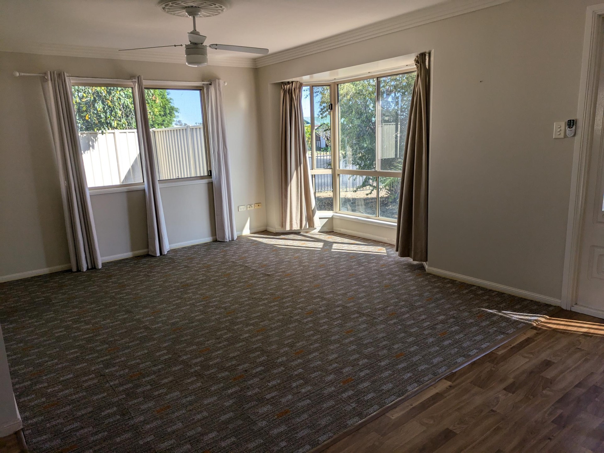 Large open plan Living and Dining area with air conditioner and ceiling fans