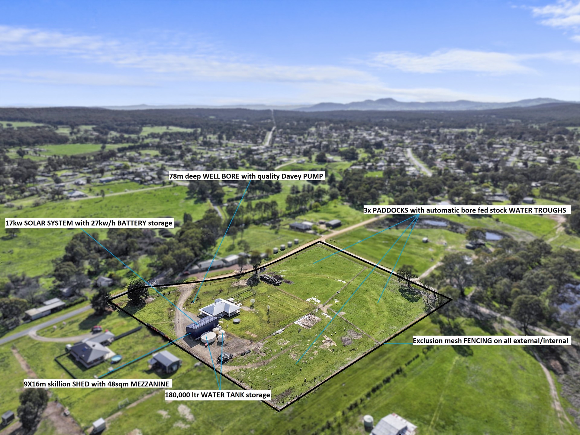 * Fully fences paddocks and yard