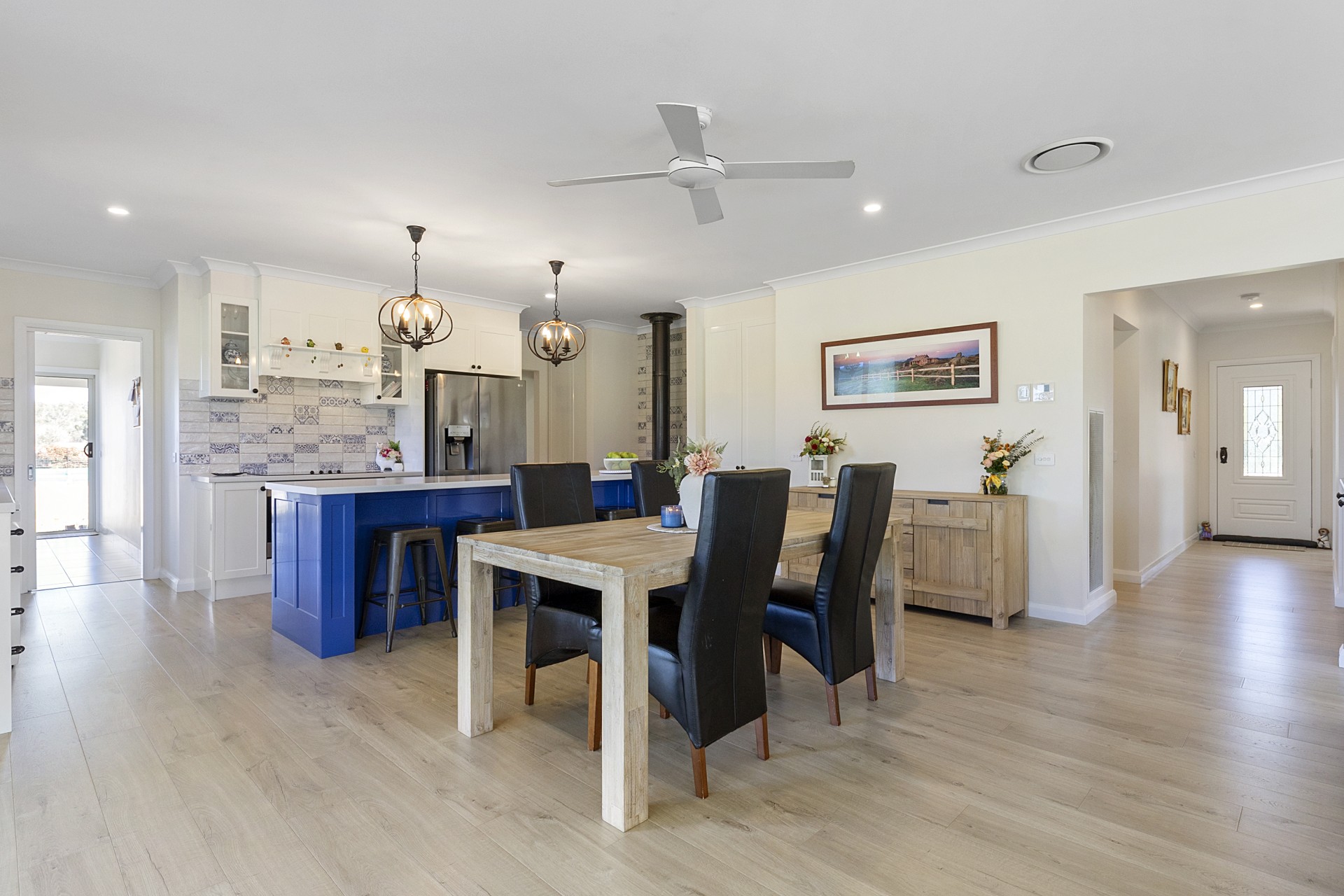 As you approach the residence, the eye-catching recycled brick facade exudes character and warmth, setting the tone for the beauty that lies within. Step inside to discover a thoughtfully designed floor plan that effortlessly combines functionality and elegance. The heart of the home boasts a wood fire combustion stove, creating a cosy ambiance perfect for unwinding on cool evenings.