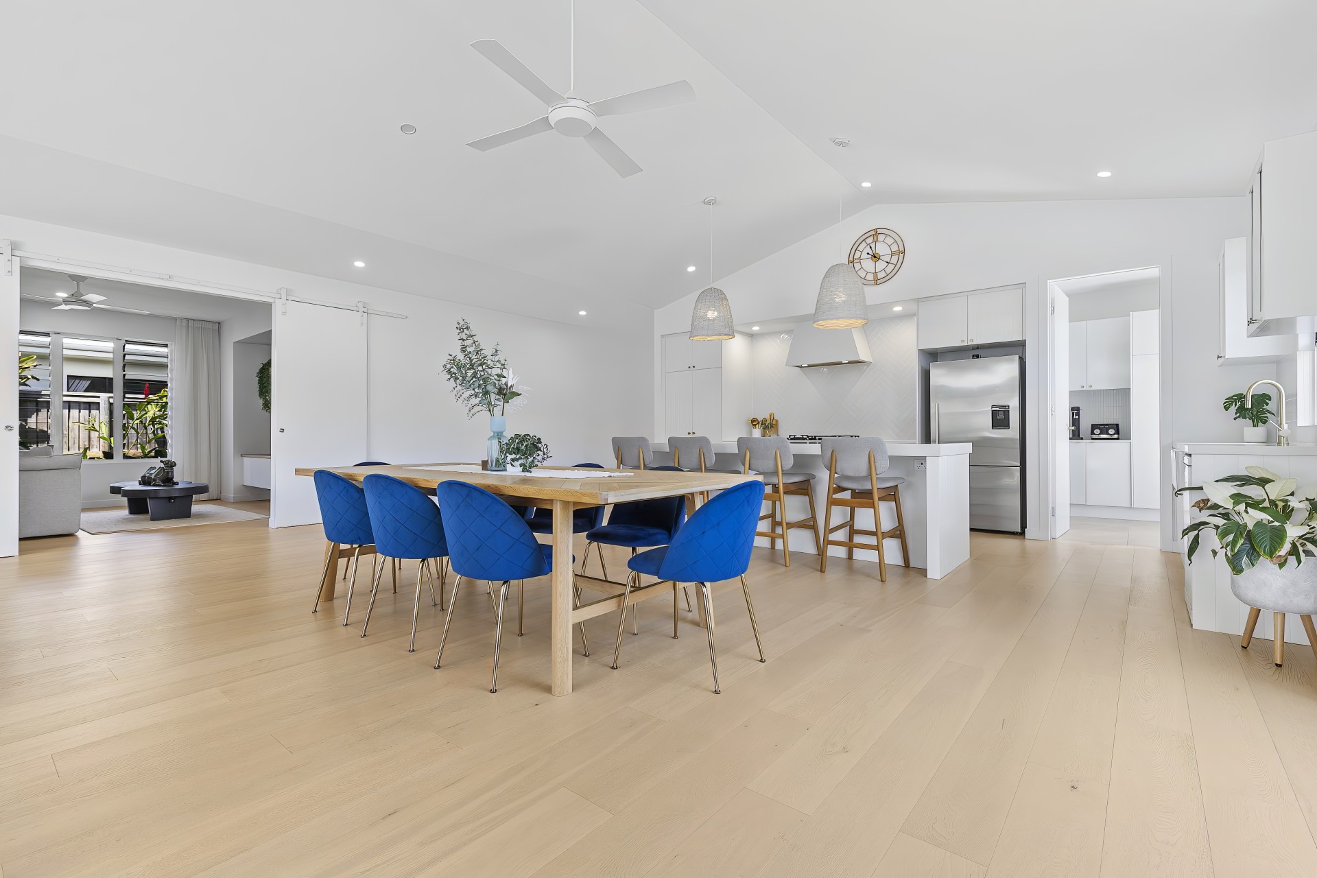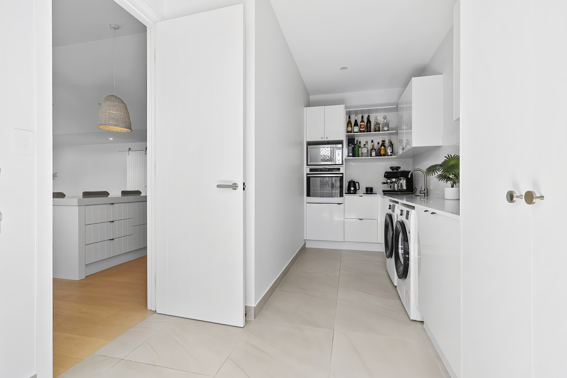 The designer kitchen is a standout, featuring stone benchtops, a 900mm gas cooktop, 2-pac soft-close cabinetry, and a fully equipped butler's pantry with integrated laundry. Whether entertaining or unwinding, this space blends functionality with style.
