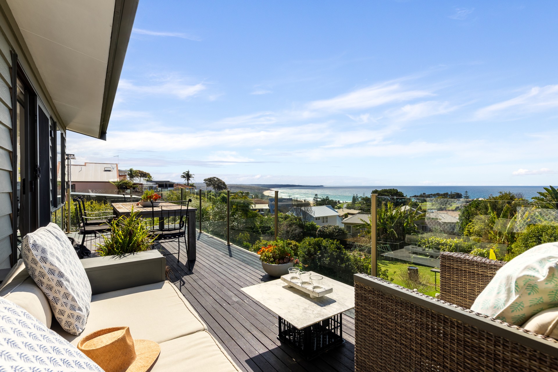Perched in an elevated position to take full advantage of sweeping ocean and beach views, this beautifully presented split-level home offers a flowing, functional layout ideal for relaxed coastal living. Crafted from Western red cedar and surrounded by established low-maintenance tropical gardens, the property combines warmth, privacy and year-round comfort in one of the most scenic and tightly held pockets of the NSW South Coast.