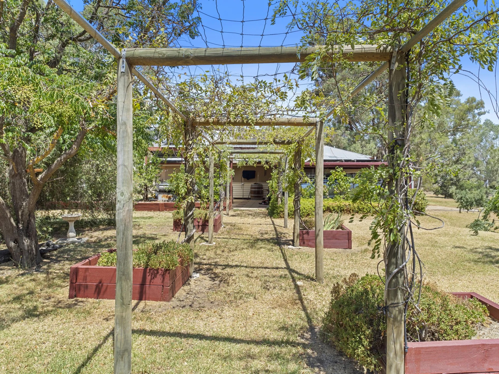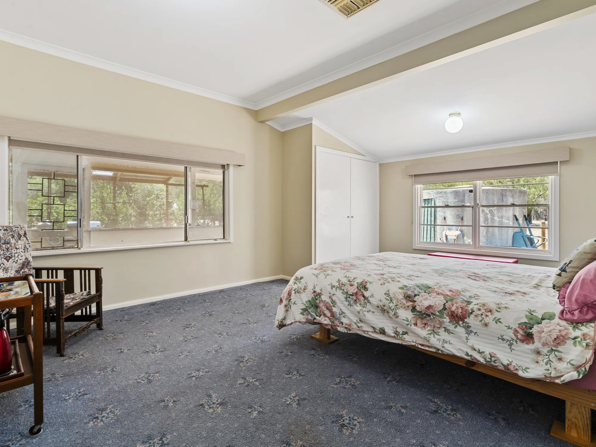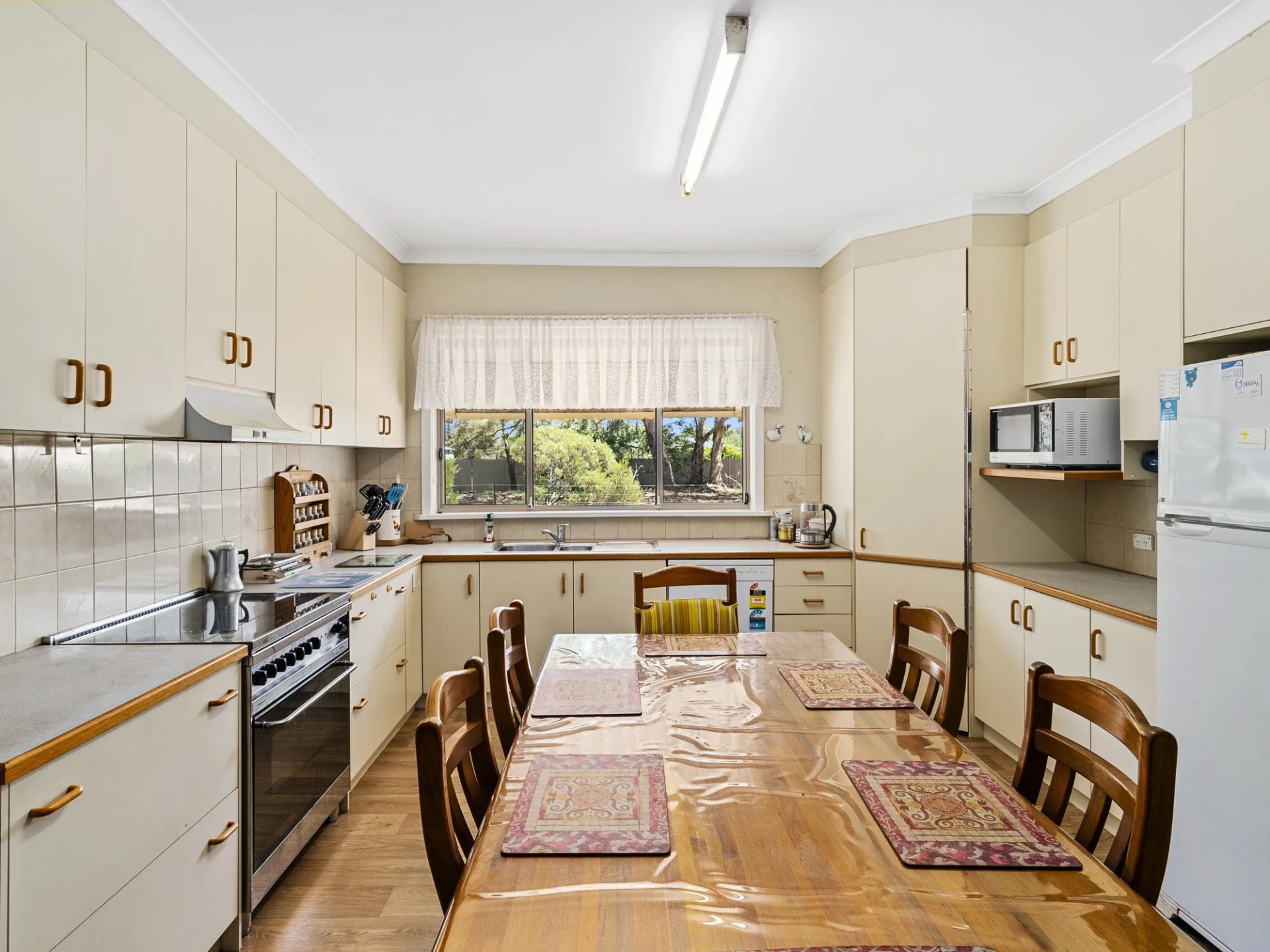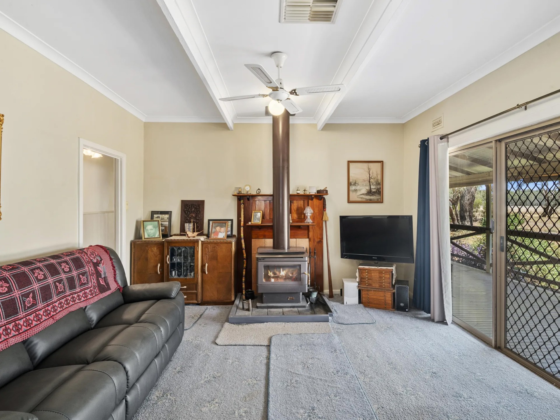This home with town water connected has 4 bedrooms, 3 bathrooms, a large kitchen/family room with split system, separate lounge with ducted wood heater to the bedrooms. The large laundry also has a bath and toilet. The master bedroom with walk in robe and ensuite opens to the parents retreat/fernery with 6 seater spa. Evaporative cooling is ducted throughout the house. There are 8 foot verandahs on 3 sides.