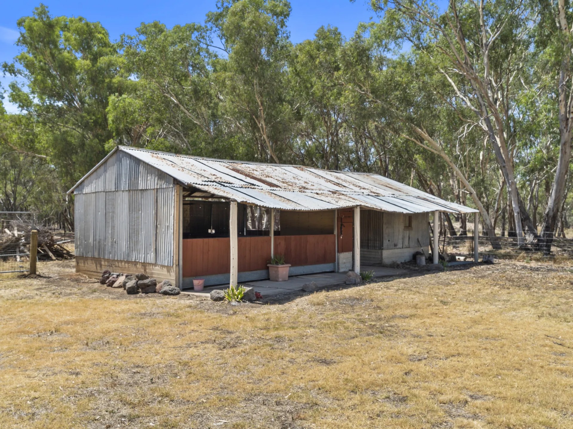 workshop has 3 phase power connected. 2 stables adjoin a tack/ feed room with nearby wash down area for the neddy.