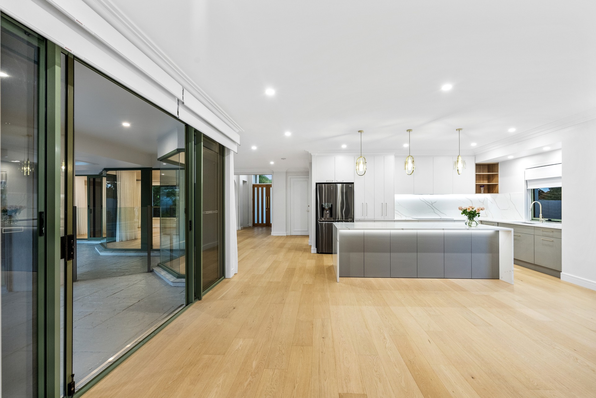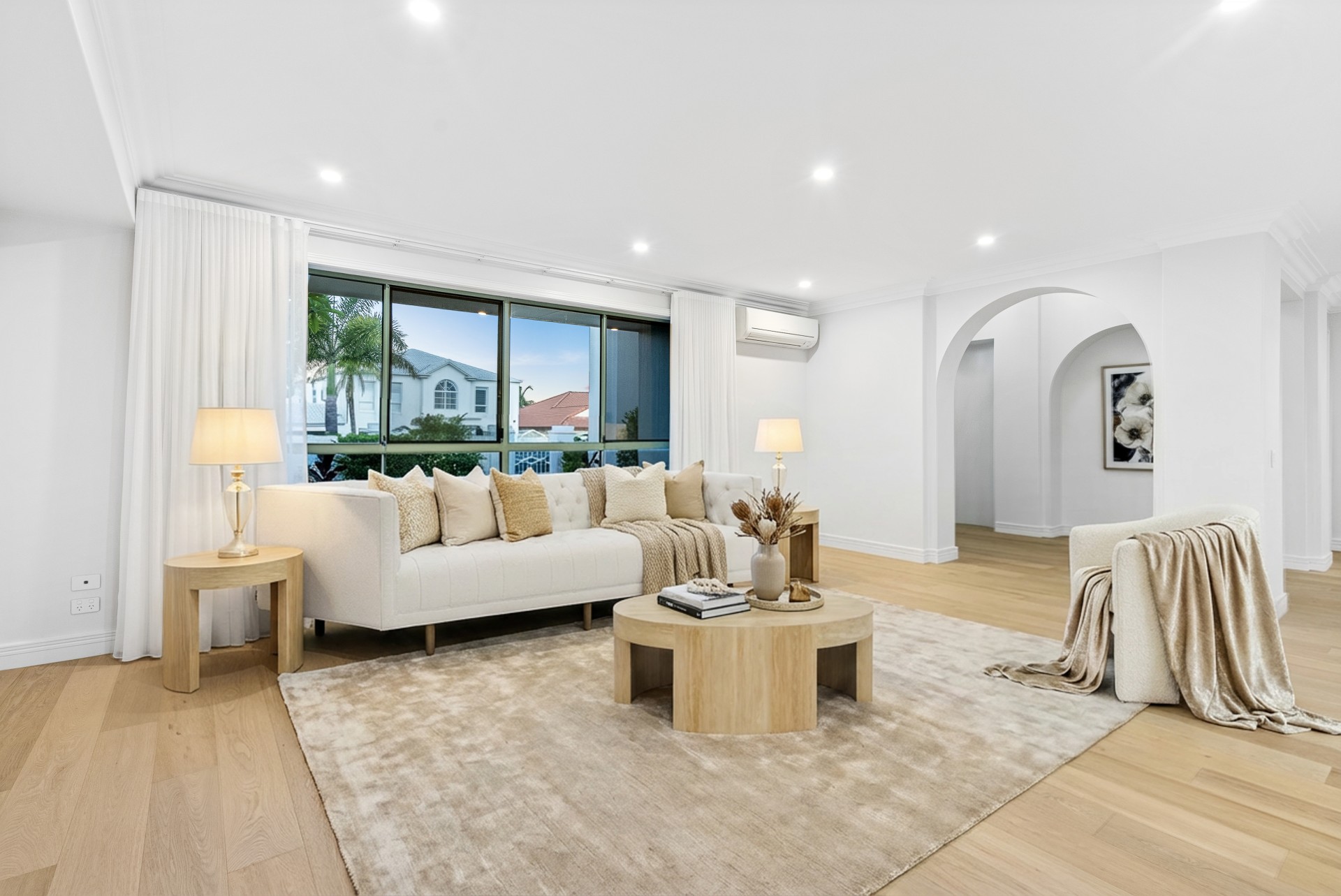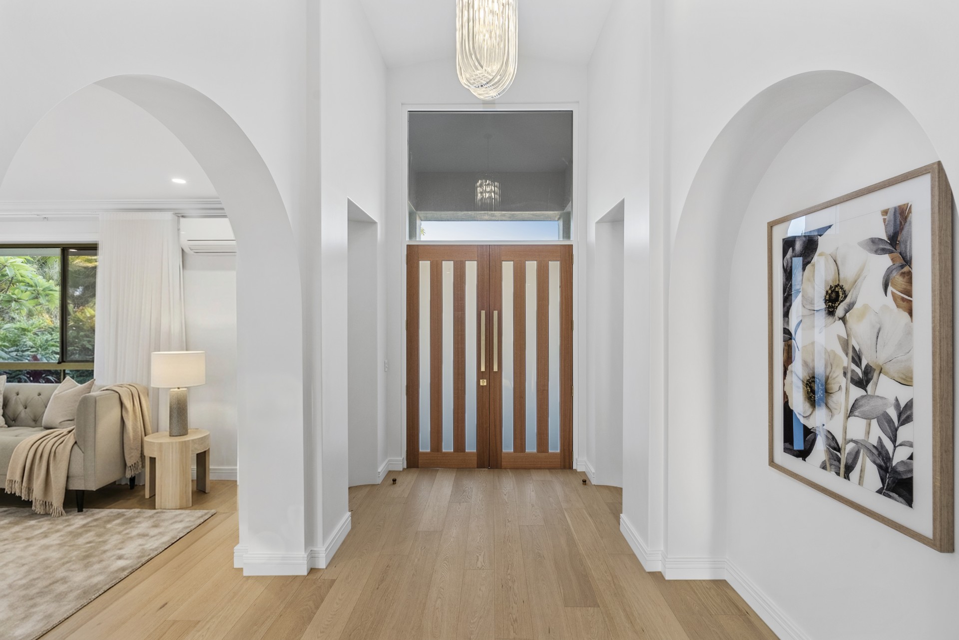 Step through grand double doors to discover high ceilings, graceful arches, and seamless open living spaces. Designer kitchen with stone benchtops, soft-close cabinetry, premium appliances, brings family and friends together into the heart of the home.