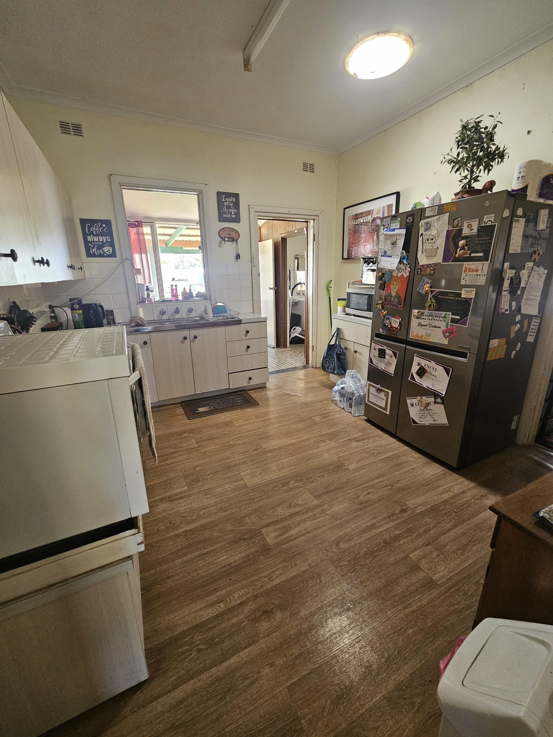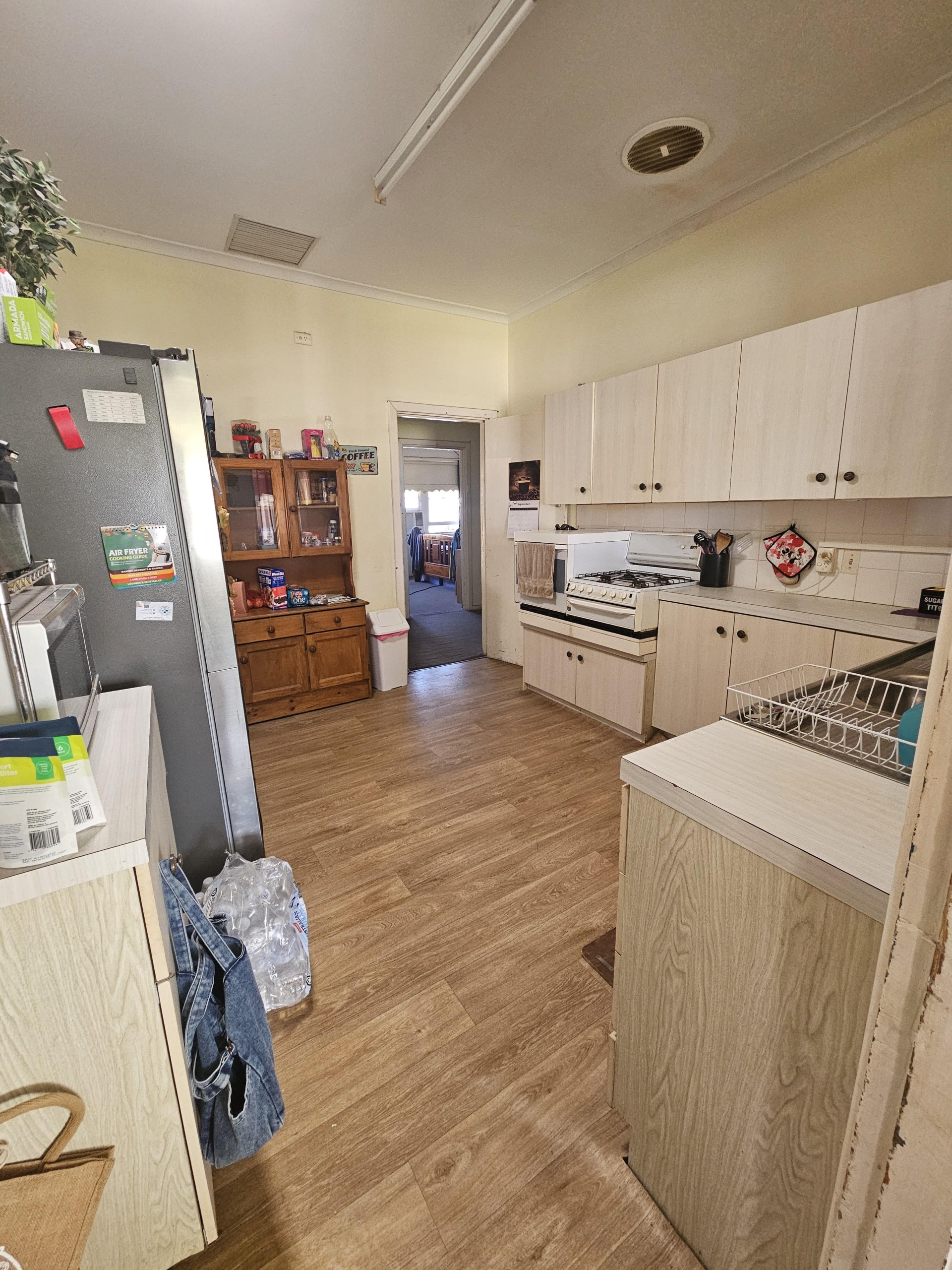 Inside, the home boasts a versatile floorplan with up to 4 bedrooms, lounge, and a large kitchen. The practicality of a separate laundry with direct access outside and second toilet make this a family friendly layout. The flexible floorplan provides scope to convert and renovate in line with the new owners' vision, offering the chance to combine character charm with modern updates. The lounge room is a comfortable retreat, complete with carpets, split-system air conditioning, and gas heating. Year-round comfort is assured throughout the house with ducted evaporative cooling and several more reverse cycle air conditioners. Security is provided by roller shutters to both front and side windows.