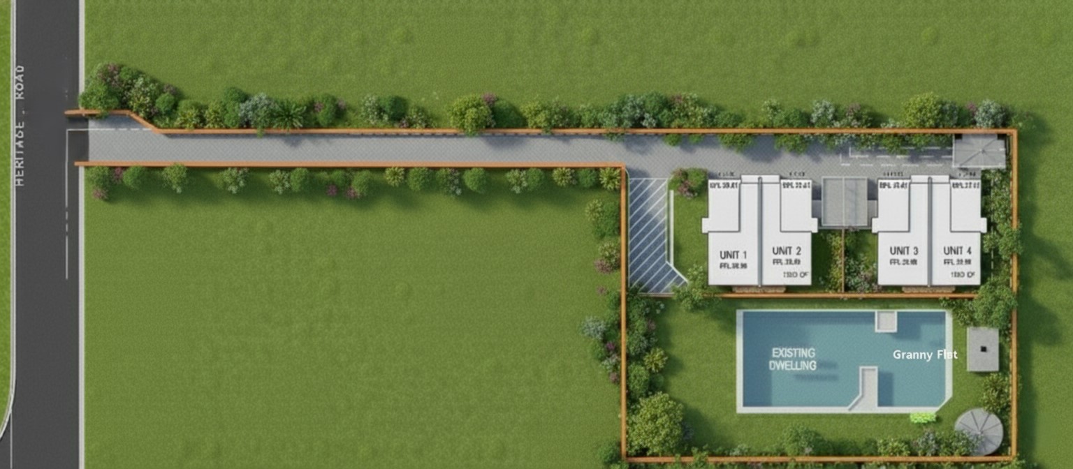 FULL DA APPROVAL for 4 New Dwellings (2 Duplexes) on a massive block.