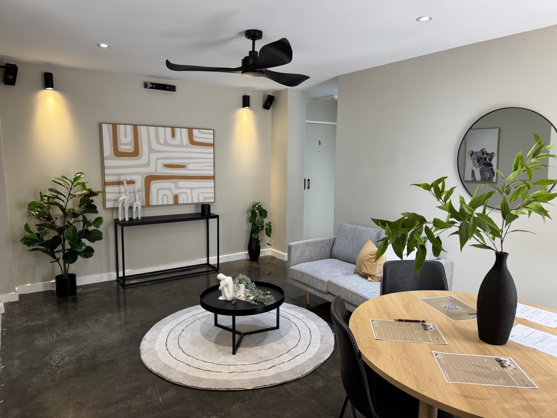 The open-plan living area flows effortlessly into a functional kitchen-an inviting space for cooking and unwinding. Comfort is guaranteed year-round with heating, cooling, ceiling fans, surround-sound wiring, and secure entry.