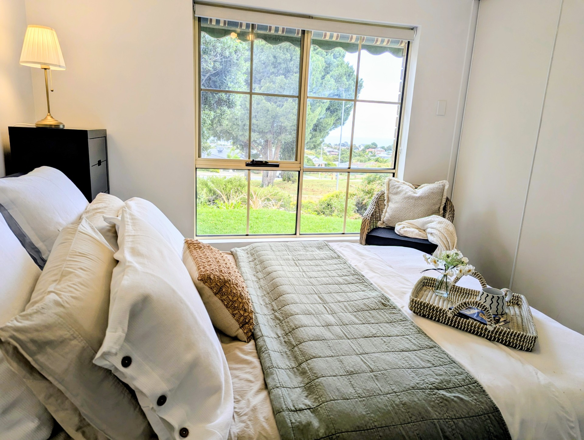 What sets this home apart is its rare privacy, with secure front and rear fencing. Outside, enjoy water-wise gardens, a front porch with sea views, and an undercover carport that doubles as an entertaining space. Additional parking is available in this small, well-kept group of 8.