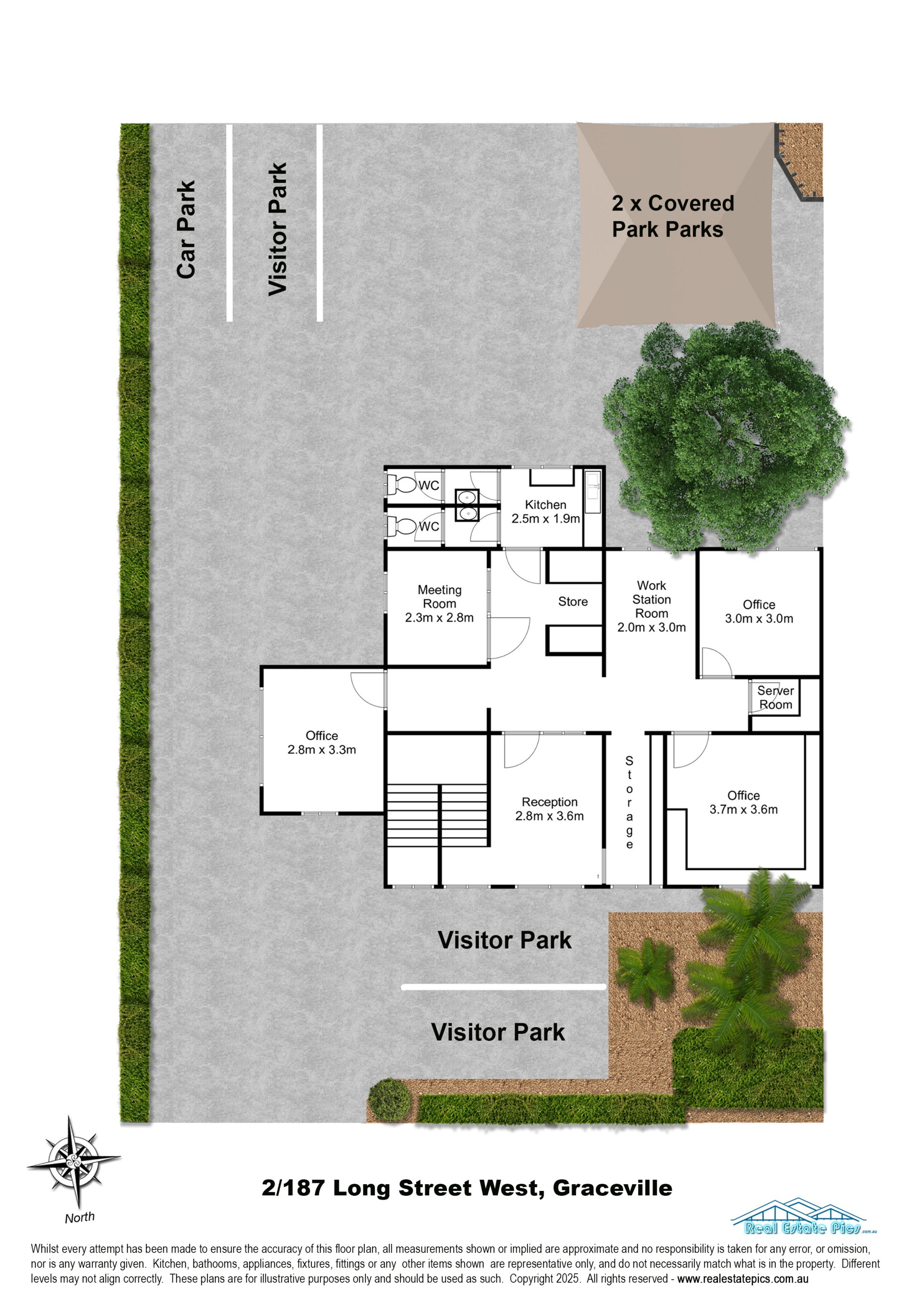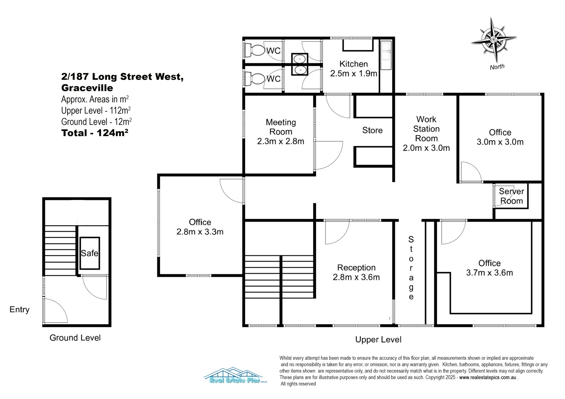 The parent property is briefly described as a strata title office unit complex known as "Graceville Professional Office" comprising a total of two units. As per the building unit plan attached, the property for sale namely unit 2 comprises 112 square metres of upper-level office and 12 square metres of ground level entry and storage space providing a total lettable area of 124 square metres. Unit 2 has three allocated car spaces. Unit 1 has three allocated car spaces. There are three allocated visitor car parks shared between the two units.